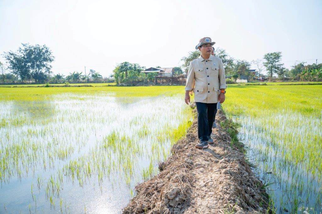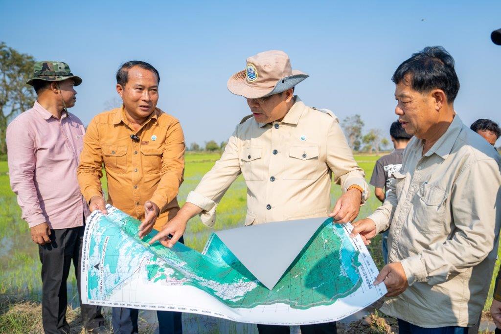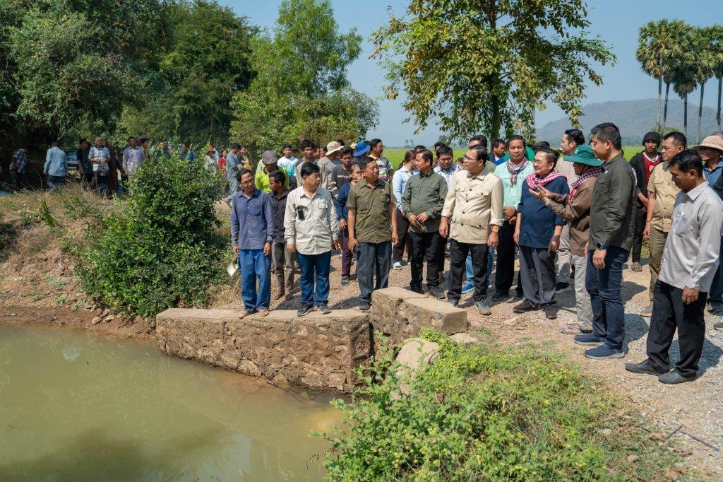 គោរពតាមអនុសាសន៍ណែនាំដ៏យកចិត្តទុកដាក់របស់សម្តេចមហាបវរធិបតី ហ៊ុន ម៉ាណែត នាយករដ្ឋមន្ត្រីនៃព្រះរាជាណាចក្រកម្ពុជា ឱ្យក្រសួងធនធានទឹក និងឧតុនិយមត្រូវតែចុះទៅដល់គ្រប់ទីតាំង ដើម្បីអន្តរាគមន៍ជួយដោះស្រាយបញ្ហាទឹកជូនដល់ប្រជាពលរដ្ឋ នៅព្រឹកថ្ងៃអាទិត្យ ៥កើត ខែមាឃ ឆ្នាំរោង ឆស័ក ពុទ្ធសករាជ ២៥៦៨ ត្រូវនឹងថ្ងៃទី២ ខែកុម្ភៈ ឆ្នាំ២០២៥ នេះ ឯកឧត្តម ថោ ជេដ្ឋា រដ្ឋមន្ត្រីក្រសួងធនធានទឹក និងឧតុនិយម អមដំណើរដោយឯកឧត្តមជាថ្នាក់ដឹកនាំ មន្ត្រីបច្ចេកទេសក្រសួង និងមន្ទីរធនធានទឹក និងឧតុនិយមខេត្តបាត់ដំបង រួមជាមួយឯកឧត្តម សុខ លូ អភិបាលនៃគណៈអភិបាលខេត្តបាត់ដំបង និងមន្ទីរពាក់ព័ន្ធ ព្រមទាំងអាជ្ញាធរមូលដ្ឋាន បានអញ្ជើញចុះពិនិត្យការងារអន្តរាគមន៍បូមទឹកសង្គ្រោះស្រូវប្រាំងប្រជាកសិករប្រមាណ ១៧០០ហិកតា នៅឃុំស្នឹង និងបានជួបសំណេះសំណាលជាមួយសហគមន៍កសិករប្រើប្រាស់ទឹកនៃប្រព័ន្ធធារាសាស្ត្រកំពីងពួយ ក្នុងស្រុកបាណន់ ខេត្តបាត់ដំបង។
