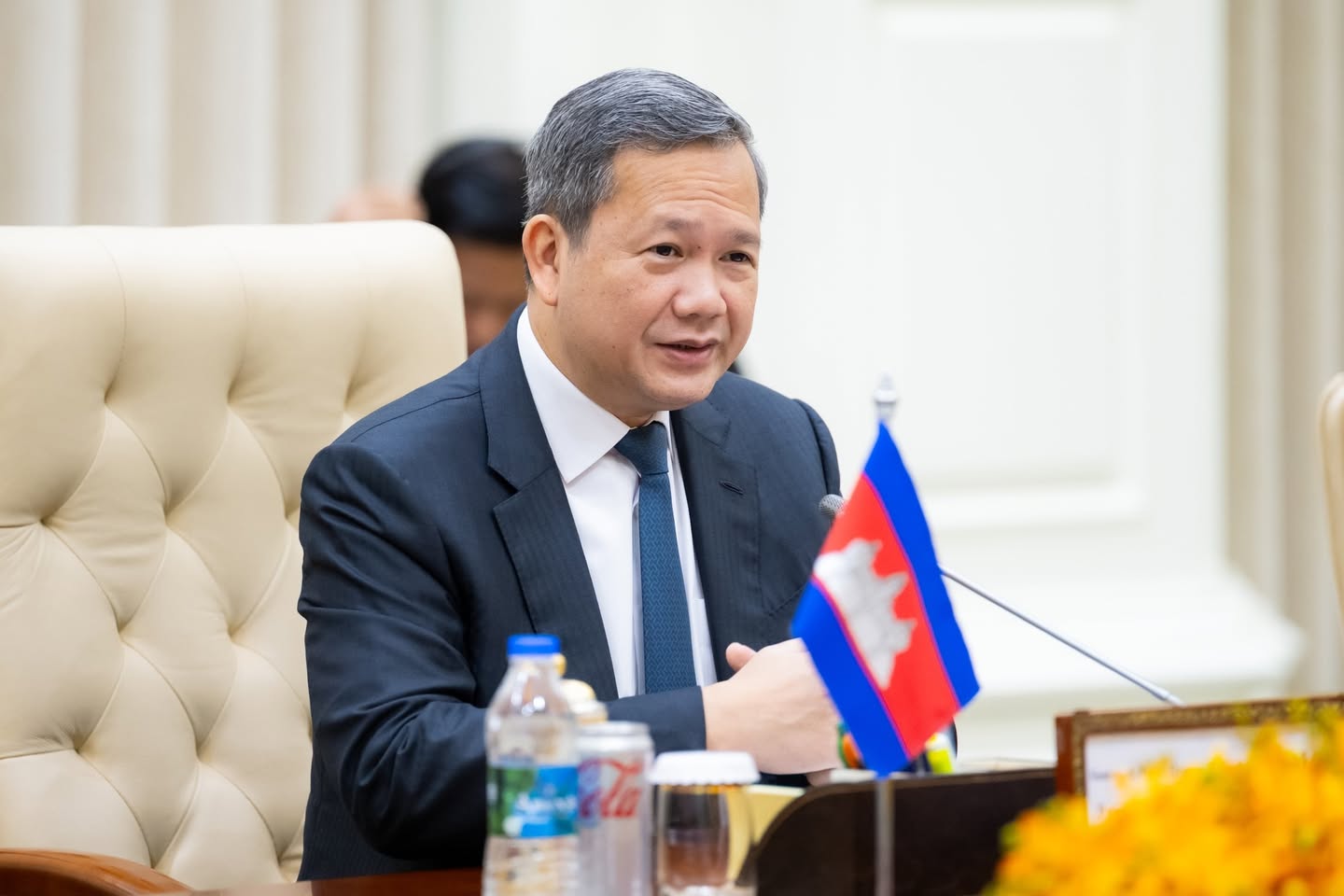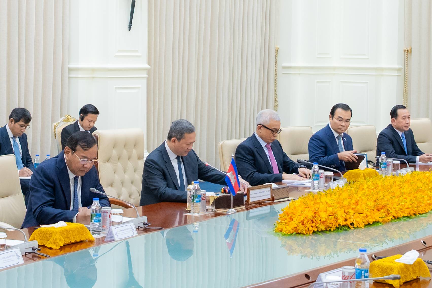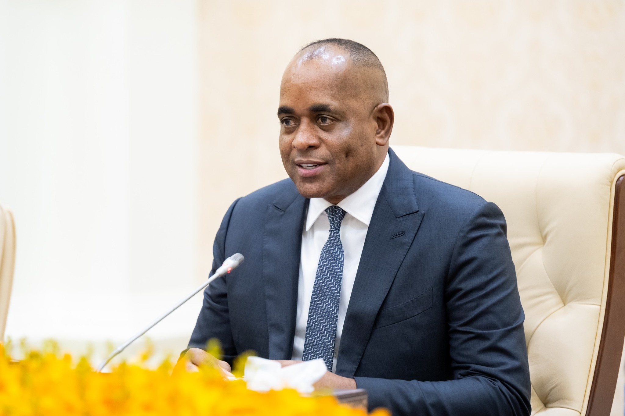 នាព្រឹកថ្ងៃព្រហស្បតិ៍ ២រោច ខែអស្សុជ ឆ្នាំម្សាញ់ សប្តស័ក ពុទ្ធសករាជ ២៥៦៩ ត្រូវនឹងថ្ងៃទី៩ ខែតុលា ឆ្នាំ២០២៥ នៅវិមានសន្តិភាព ឯកឧត្តម ថោ ជេដ្ឋា រដ្ឋមន្ត្រីក្រសួងធនធានទឹក និងឧតុនិយម បានអញ្ជើញអមសម្តេចមហាបវរធិបតី ហ៊ុន ម៉ាណែត នាយករដ្ឋមន្ត្រីនៃព្រះរាជាណាចក្រកម្ពុជា ជួបពិភាក្សាការងារទ្វេភាគីជាមួយឯកឧត្តម រ៉ូសឺវែល ស្កឺរីត (Roosevelt Skerrit) នាយករដ្ឋមន្ត្រីនៃកុំមិនវែលដូមីនីក និងគណៈប្រតិភូជាន់ខ្ពស់ ក្នុងឱកាសនៃដំណើរទស្សនកិច្ចការងារនៅព្រះរាជាណាចក្រកម្ពុជា។