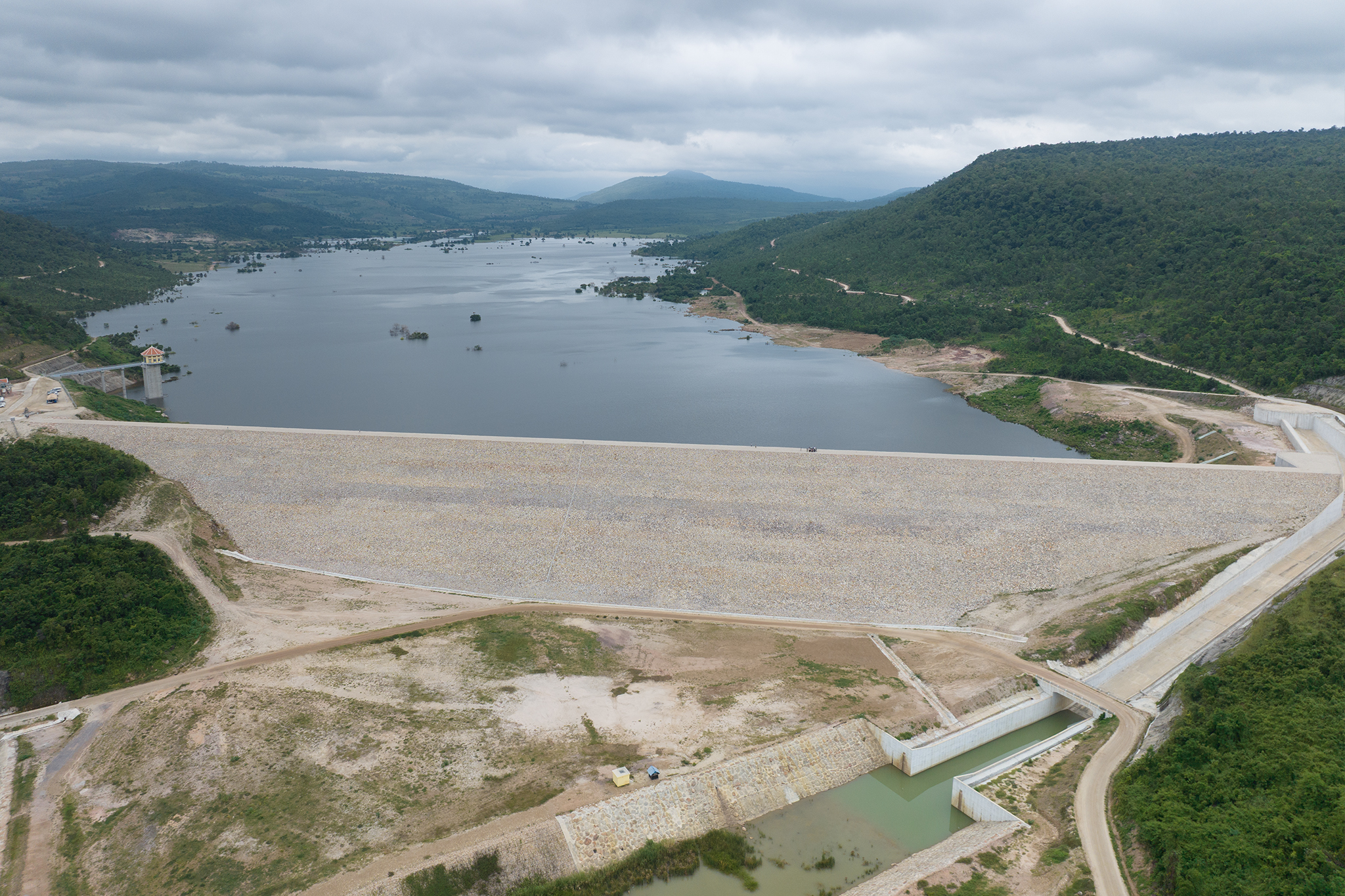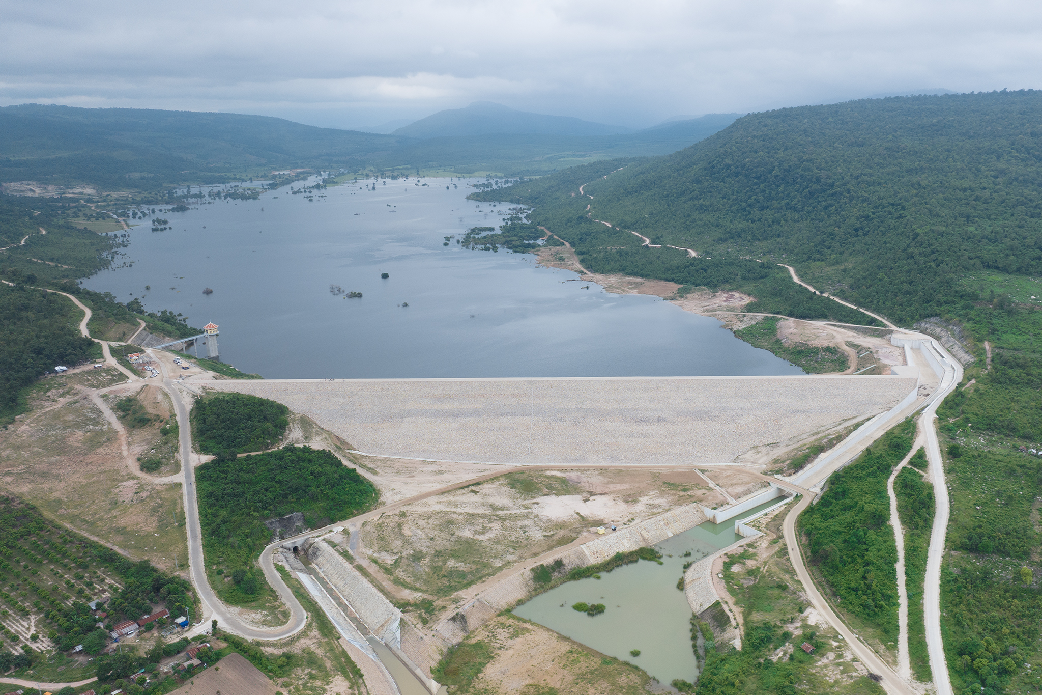 Once completed, the Dauntri Dam will have a storage capacity of about 163 million cubic meters and will supply irrigation water to approximately 33,000 hectares of farmland in the rainy season and 4,500 hectares in the dry season, benefiting 15 communes across Moung Ruessei and Rukh Kiri districts in Battambang Province and Bakan District in Pursat Province. The project will also play a key role in improving clean water supply for daily use and mitigating flooding in certain downstream areas.