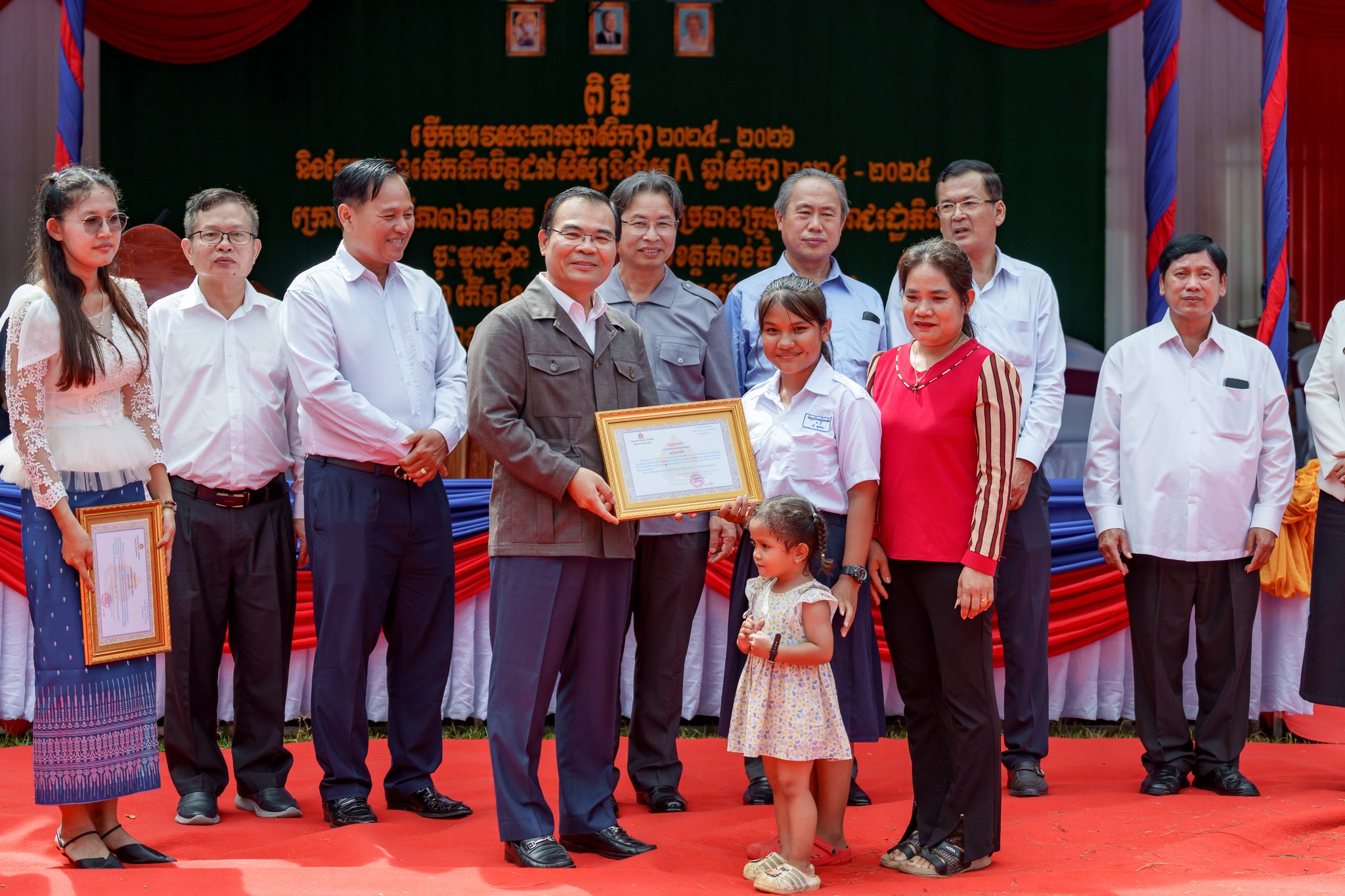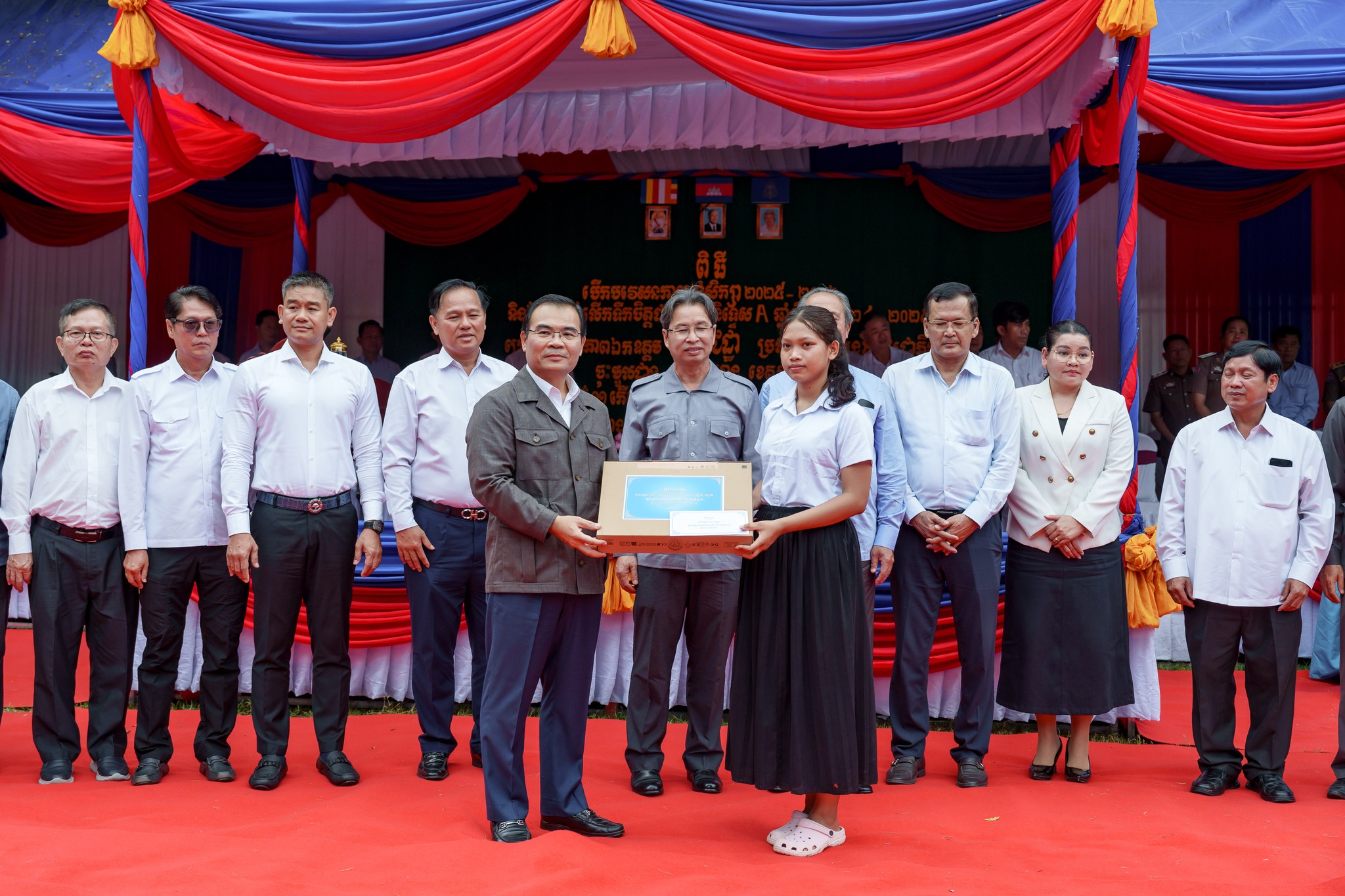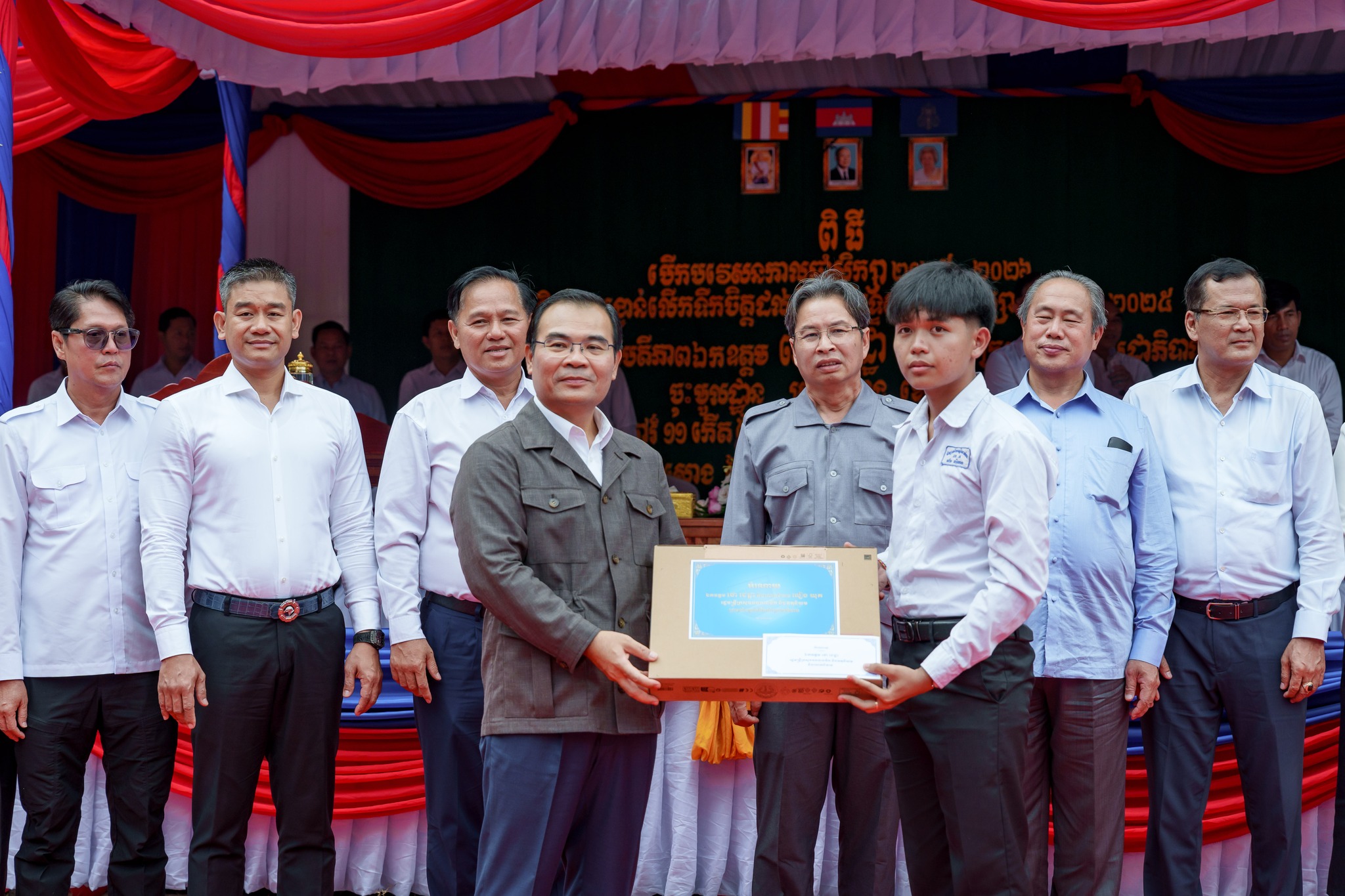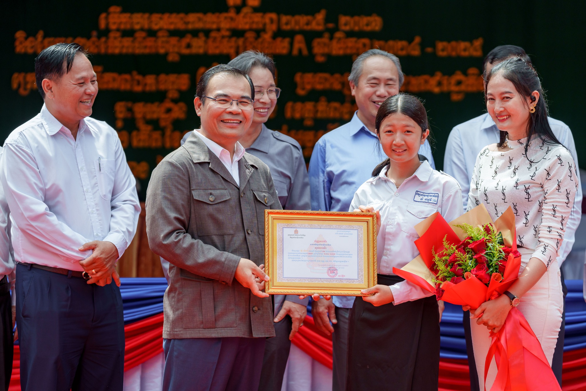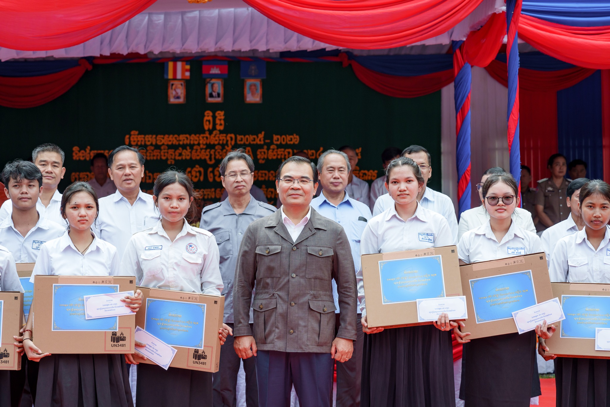 សូមបញ្ជាក់ថា រង្វាន់ជាសម្ភារ និងថវិកា ដែលប្រគល់ជូនដល់សិស្សានុសិស្សនាពេលនេះរួមមាន៖ ១)សិស្សនិទ្ទេសA ចំនួន១៥នាក់ ក្នុងម្នាក់ៗទទួលបានកុំព្យូទ័រយួរដៃចំនួន ១គ្រឿង និងថវិកាចំនួន ៤០ម៉ឺនរៀល ២)សិស្សចូលរួមសរុប ២០១២នាក់ ក្នុងម្នាក់ៗទទួលបានថវិកា ១ម៉ឺនរៀល ៣)ឧបត្ថម្ភវិទ្យាល័យរស្មីសោភ័ណ ថវិកា ២លានរៀល តុកៅអីសិស្ស ១០ឈុត បាល់ទាត់ និងបាល់បោះ ២០គ្រាប់ សៀវភៅសរសេរ ១០០០ក្បាល ប៊ិច ២០០០ដើម និងក្រដាសរ៉ាម ១០កេស លោកគ្រូអ្នកគ្រូ ចំនួន ៦២នាក់ ក្នុងម្នាក់ៗថវិកាចំនួន ៥ម៉ឺនរៀល ៤)ឧបត្តម្ភវិទ្យាល័យជាស៊ីមប្រឡាយចំនួន ២លានរៀល វិទ្យាល័យហ៊ុនសែនរុងរឿងចំនួន ២លានរៀល និងវិទ្យាល័យហ៊ុនសែនចំណាលើចំនួន ២លានរៀល៕