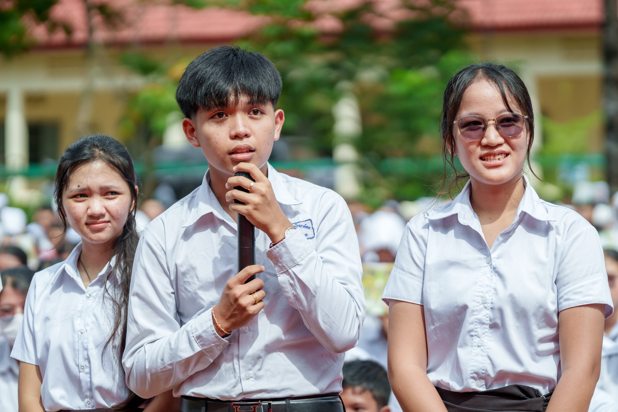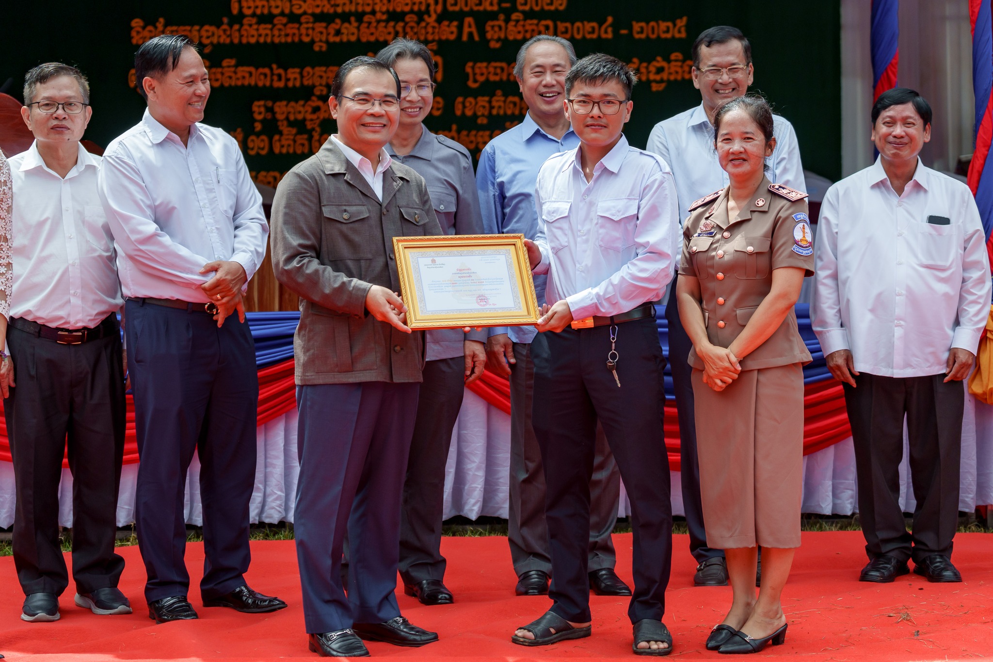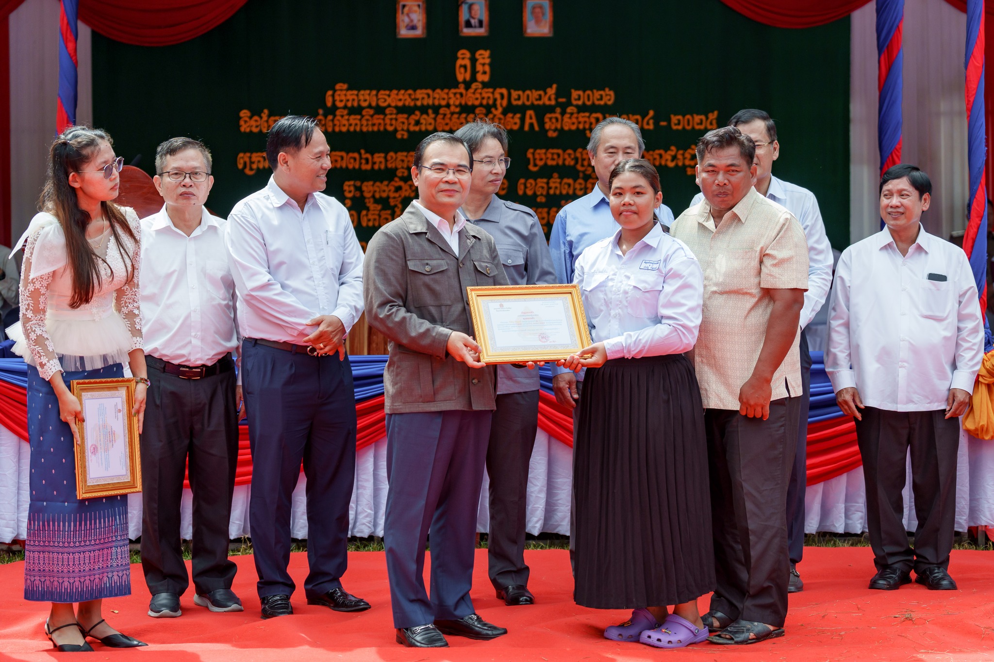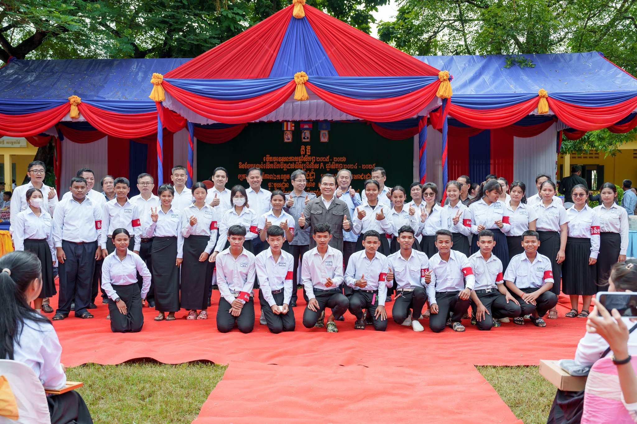 សូមបញ្ជាក់ថា រង្វាន់ជាសម្ភារ និងថវិកា ដែលប្រគល់ជូនដល់សិស្សានុសិស្សនាពេលនេះរួមមាន៖ ១)សិស្សនិទ្ទេសA ចំនួន១៥នាក់ ក្នុងម្នាក់ៗទទួលបានកុំព្យូទ័រយួរដៃចំនួន ១គ្រឿង និងថវិកាចំនួន ៤០ម៉ឺនរៀល ២)សិស្សចូលរួមសរុប ២០១២នាក់ ក្នុងម្នាក់ៗទទួលបានថវិកា ១ម៉ឺនរៀល ៣)ឧបត្ថម្ភវិទ្យាល័យរស្មីសោភ័ណ ថវិកា ២លានរៀល តុកៅអីសិស្ស ១០ឈុត បាល់ទាត់ និងបាល់បោះ ២០គ្រាប់ សៀវភៅសរសេរ ១០០០ក្បាល ប៊ិច ២០០០ដើម និងក្រដាសរ៉ាម ១០កេស លោកគ្រូអ្នកគ្រូ ចំនួន ៦២នាក់ ក្នុងម្នាក់ៗថវិកាចំនួន ៥ម៉ឺនរៀល ៤)ឧបត្តម្ភវិទ្យាល័យជាស៊ីមប្រឡាយចំនួន ២លានរៀល វិទ្យាល័យហ៊ុនសែនរុងរឿងចំនួន ២លានរៀល និងវិទ្យាល័យហ៊ុនសែនចំណាលើចំនួន ២លានរៀល៕