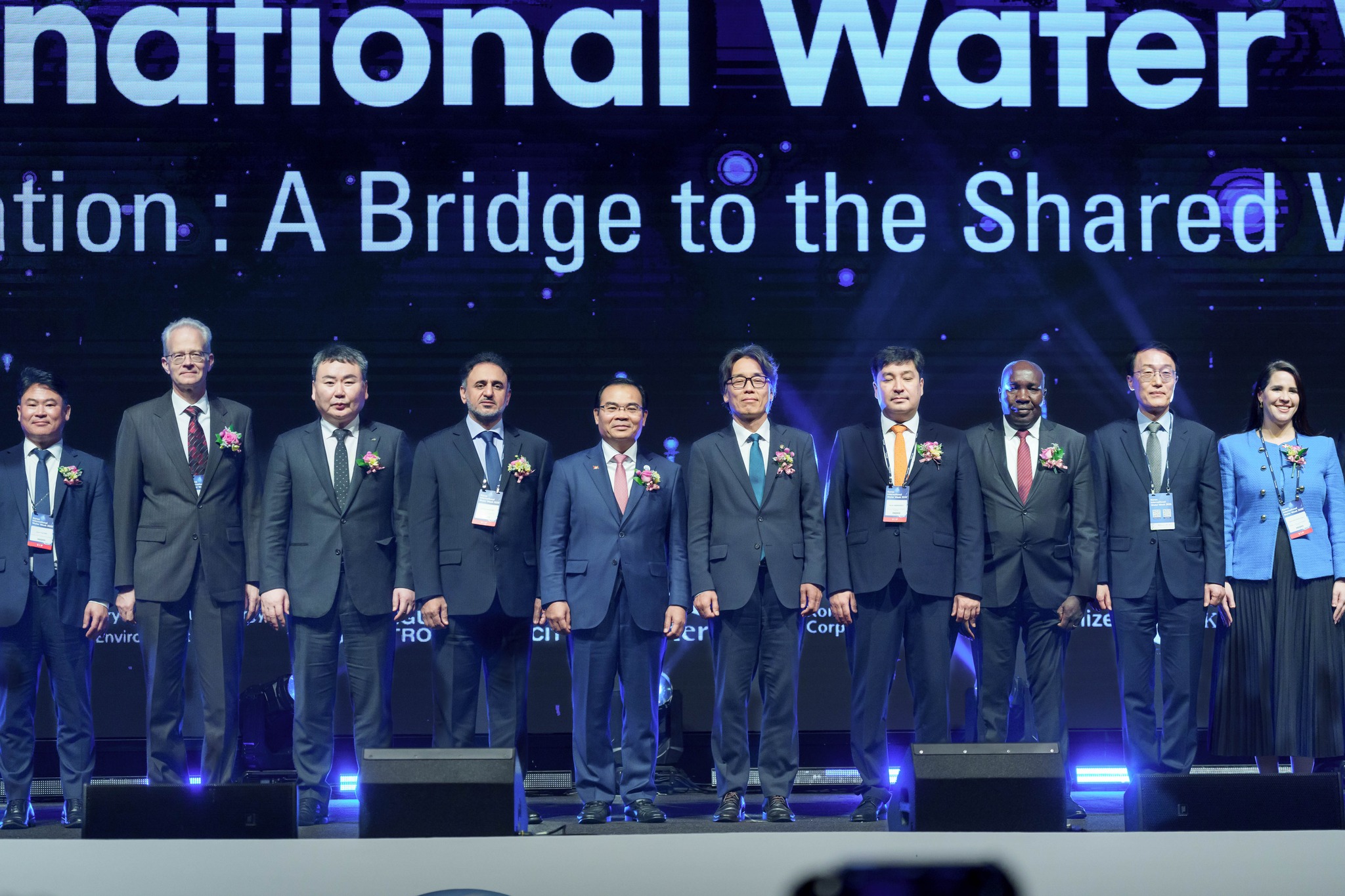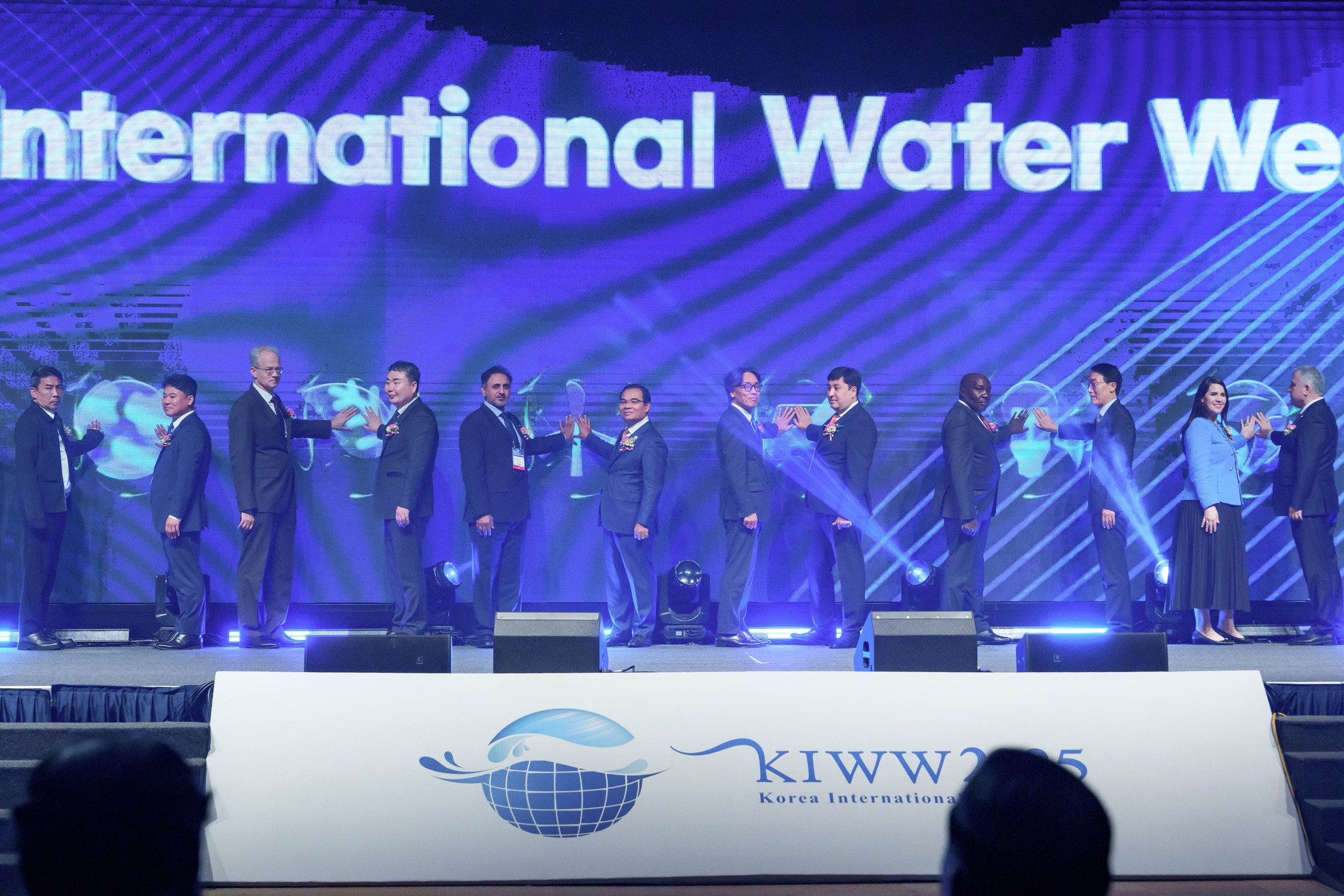សូមជម្រាបថា កម្មវិធីសប្តាហ៍ទឹកអន្តរជាតិកូរ៉េឆ្នាំ២០២៥ ដែលមានការចូលរួមពីបណ្តារដ្ឋាភិបាល វិស័យឯកជន សង្គមស៊ីវិល អ្នកស្រាវជ្រាវ អ្នកជំនាញពាក់ព័ន្ធផ្នែកទឹកមកពីតំបន់នានានៅលើពិភពលោក បានប្រព្រឹត្តទៅក្រោមប្រធានបទ«ការកសាងអនាគតទឹកឆ្លាតវៃ ដោយការចែករំលែកបទពិសោធន៍ និងបច្ចេកវិទ្យា គំនិតច្នៃប្រឌិតឆ្លាតវៃ៖ ស្ពានឆ្ពោះទៅអនាគតទឹករួម»។