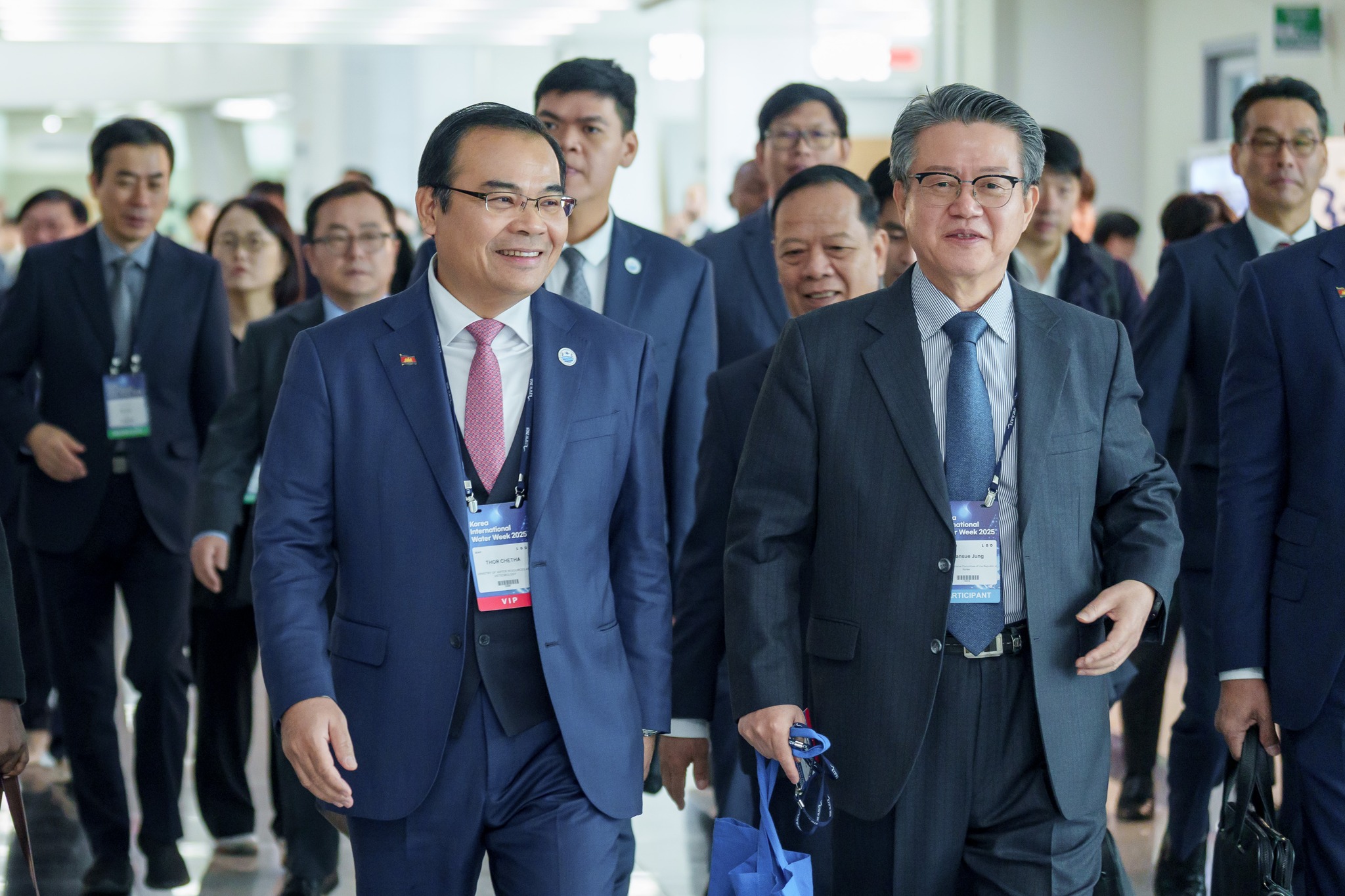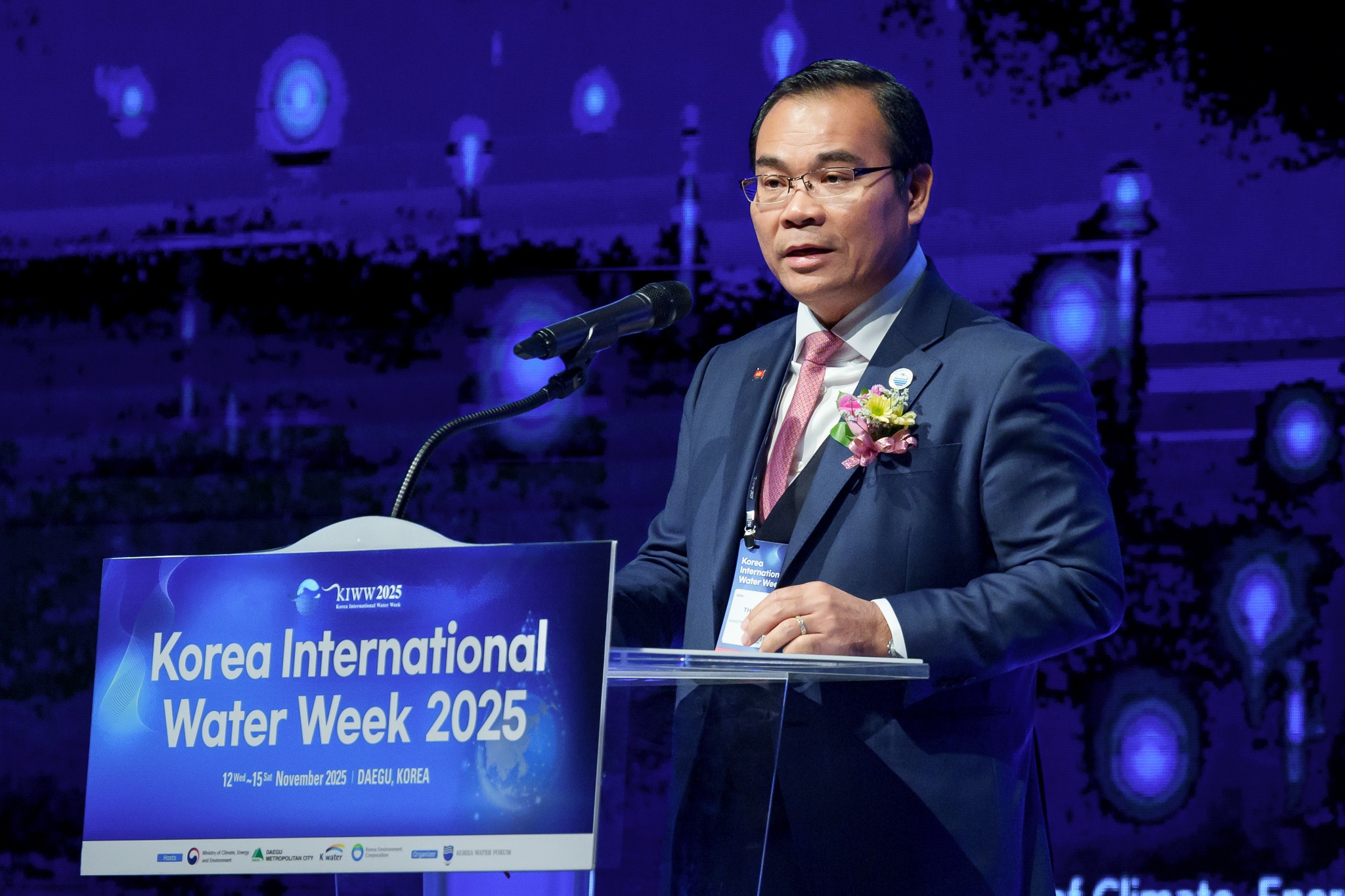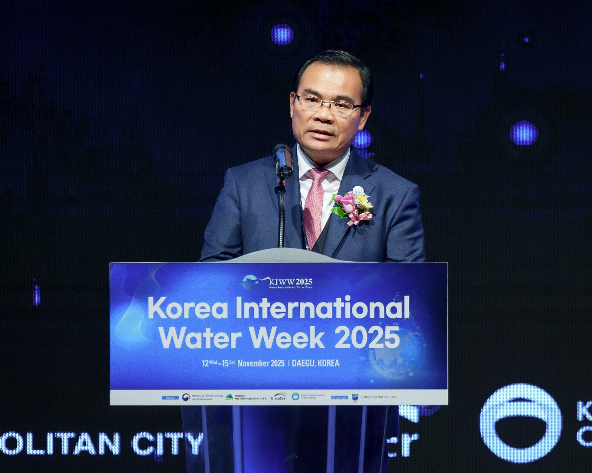 នាព្រឹកថ្ងៃពុធ ៧រោច ខែកត្តិក ឆ្នាំម្សាញ់ សប្តស័ក ពុទ្ធសករាជ ២៥៦៩ ត្រូវនឹងថ្ងៃទី១២ ខែវិច្ឆិកា ឆ្នាំ២០២៥នេះ ឯកឧត្តម ថោ ជេដ្ឋា រដ្ឋមន្ត្រីក្រសួងធនធានទឹក និងឧតុនិយម បានអញ្ជើញថ្លែងសុន្ទរកថាអបអរសាទរក្នុងពិធីបើកសប្តាហ៍ទឹកអន្តរជាតិកូរ៉េ(KIWW) ឆ្នាំ២០២៥ ក្នុងទីក្រុង Daegu សាធារណរដ្ឋកូរ៉េ ក្រោមអធិបតីភាពឯកឧត្តម Kum Hanseung អនុរដ្ឋមន្ត្រីក្រសួងអាកាសធាតុ ថាមពល និងបរិស្ថានកូរ៉េ។