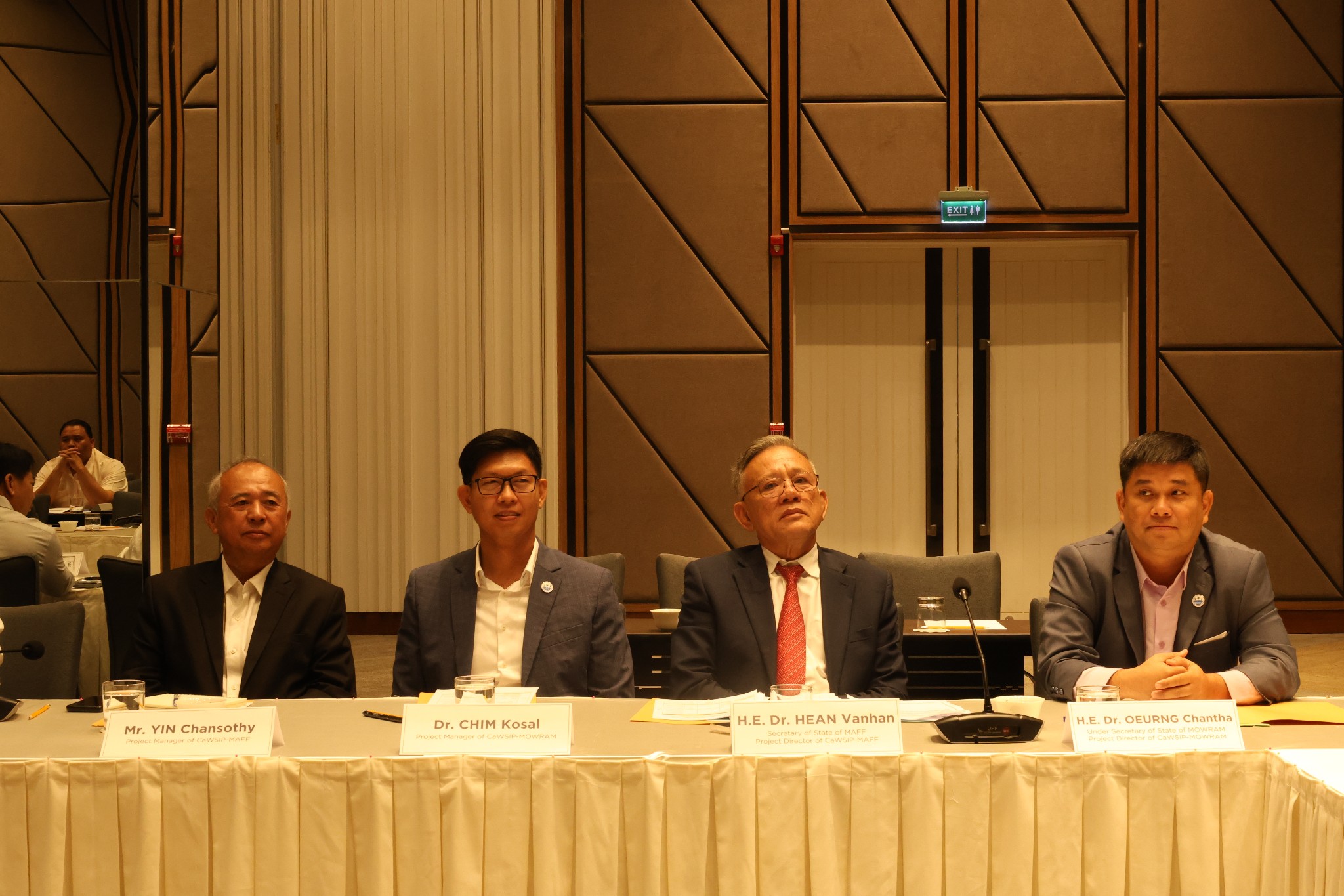 ថ្លែងក្នុងឱកាសបើកកិច្ចប្រជុំនាពេលនេះ ឯកឧត្តមរដ្ឋលេខាធិការប្រចាំការ ក៏បានថ្លែងអំណរគុណដល់ក្រសួងសេដ្ឋកិច្ច និងហិរញ្ញវត្ថុ និងធនាគារពិភពលោក ដែលបានចូលរួមគាំទ្រទាំងផ្នែកបច្ចេកទេស និងហិរញ្ញវត្ថុ សម្រាប់គម្រោងកែលម្អសន្តិសុខទឹកកម្ពុជា សំដៅឆ្ពោះទៅរកការអភិវឌ្ឍវិស័យធនធានទឹក និងឧតុនិយមនៅកម្ពុជា ប្រកបដោយចីរភាព និងបរិយាបន្ន ហើយគម្រោងនេះ នឹងចូលរួមលើកកម្ពស់ការអភិវឌ្ឍវិស័យធនធានទឹក ប្រកបដោយយុទ្ធសាស្រ្ត និងចក្ខុវិស័យវែងឆ្ងាយ ធ្វើយ៉ាងណាធានាប្រែក្លាយកម្ពុជា ជាប្រទេសដែលមានសន្តិសុខទឹកនាពេលអនាគត ក្នុងបរិបទនៃការអភិវឌ្ឍ កំណើនសម្ពាធនានាពីសកម្មភាពមនុស្ស និងការប្រែប្រួលអាកាសធាតុ។