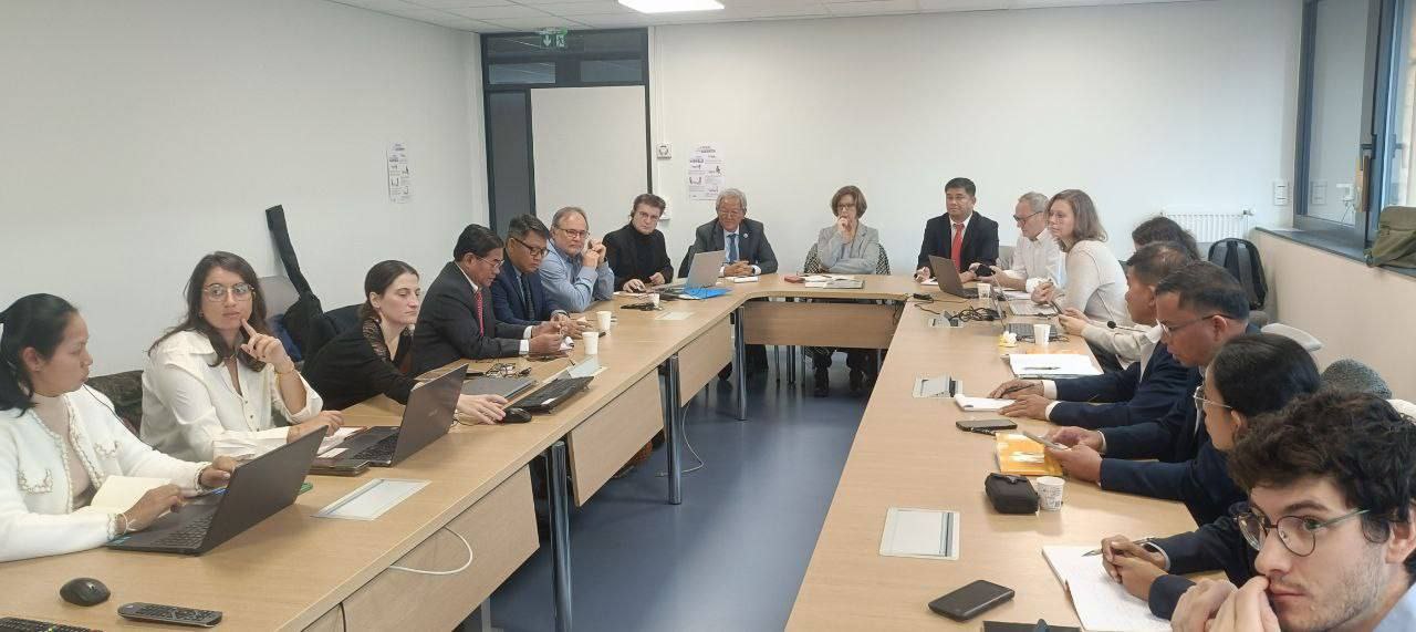 នៅថ្ងៃពុធ-អាទិត្យ ១៣កើត-២រោច ខែមិគសិរ ឆ្នាំម្សាញ់ សប្តស័ក ពុទ្ធសករាជ ២៥៦៩ ត្រូវនឹងថ្ងៃទី៣-៧ ខែធ្នូ ឆ្នាំ២០២៥នេះ ឯកឧត្តមសាស្រ្តចារ្យបណ្ឌិត អឿង ចន្ថា អនុរដ្ឋលេខាធិការ ក្នុងនាមតំណាងដ៏ខ្ពង់ខ្ពស់ឯកឧត្តម ថោ ជេដ្ឋា រដ្ឋមន្រ្តីក្រសួងធនធានទឹក និងឧតុនិយម បានអញ្ជើញបំពេញទស្សនកិច្ចផ្លាស់ប្តូរបច្ចេកទេសលើការគ្រប់គ្រងធនធានទឹកចម្រុះ(IWRM) ក្នុងក្របខណ្ឌការគ្រប់គ្រងអាងទន្លេ រយៈពេល ៥ថ្ងៃ នៅសាធារណរដ្ឋបារាំង។