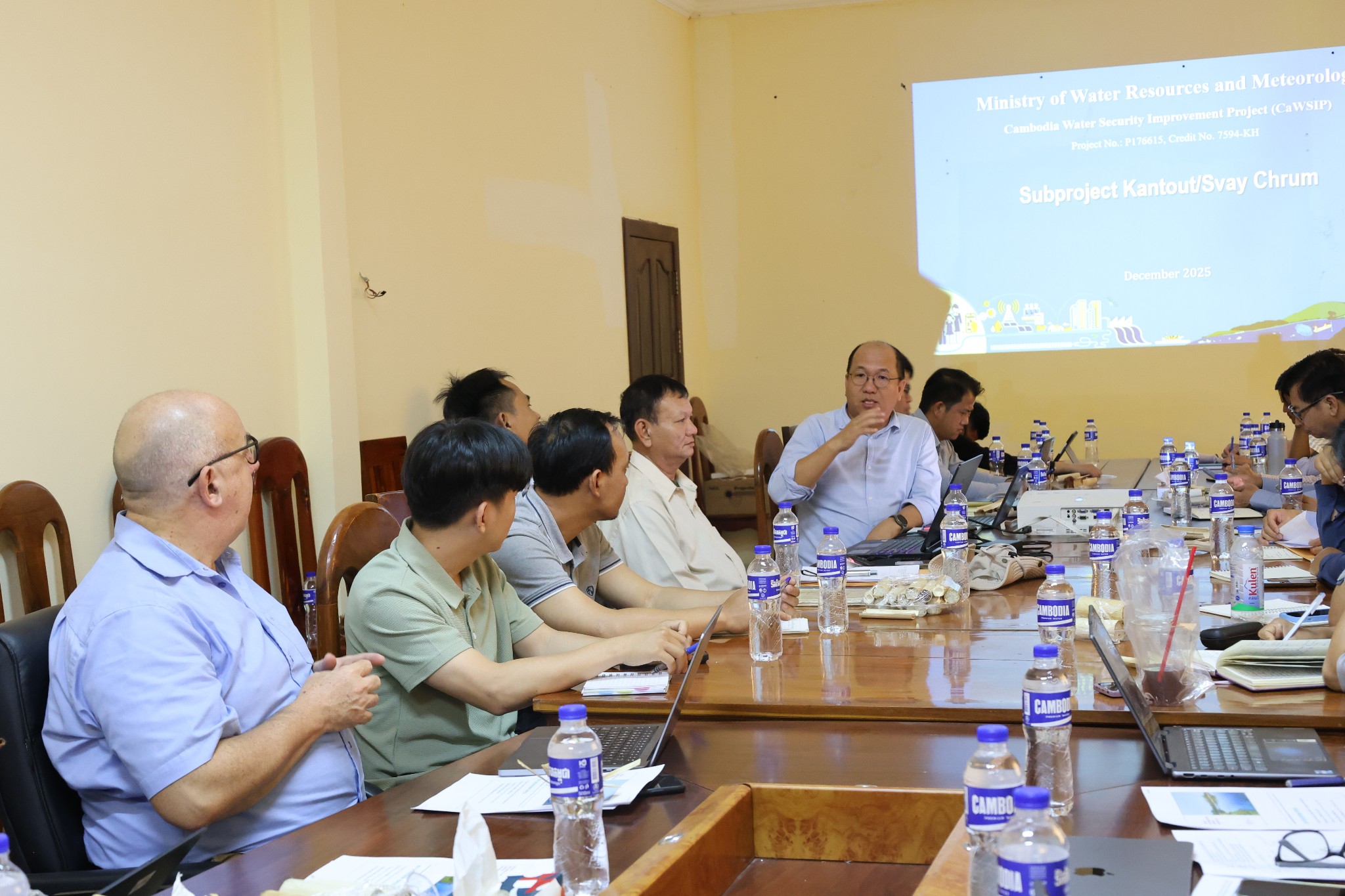 នាថ្ងៃសុក្រ-សៅរ៍ ១៥កើត-១រោច ខែមិគសិរ ឆ្នាំម្សាញ់ សប្តស័ក ពុទ្ធសករាជ ២៥៦៩ ត្រូវនឹងថ្ងៃទី៥-៦ ខែធ្នូ ឆ្នាំ២០២៥ លោកបណ្ឌិត ជឹម កុសល អគ្គនាយករងនៃអគ្គនាយកដ្ឋានកិច្ចការបច្ចេកទេស និងជាប្រធានគ្រប់គ្រងគម្រោងកែលម្អសន្ដិសុខទឹកកម្ពុជា ក្នុងនាមតំណាងដ៏ខ្ពង់ខ្ពស់ឯកឧត្តម ថោ ជេដ្ឋា រដ្ឋមន្ត្រីក្រសួងធនធានទឹក និងឧតុនិយម រួមជាមួយឯកឧត្តមបណ្ឌិត ហ៊ាន វណ្ណហន រដ្ឋលេខាធិការក្រសួងកសិកម្ម រុក្ខាប្រមាញ់ និងនេសាទ និងជានាយកគម្រោងកែលម្អសន្តិសុខទឹកកម្ពុជាសម្រាប់សមាសភាគទី៣ បានអញ្ជើញដឹកនាំក្រុមការងារគម្រោងជាមួយក្រុមបេសកកម្មគាំទ្រលើការអនុវត្តគម្រោងលើកទី២ របស់គម្រោងកែលម្អសន្តិសុខទឹកកម្ពុជា ធ្វើទស្សនកិច្ចនៅប្រព័ន្ធធារាសាស្ត្រស្វាយជ្រុំនិងកន្ទួត ស្ថិតក្នុងខេត្តក្រចេះ និងប្រព័ន្ធធារាសាស្ត្រស្រែហ៊ុយ ស្ថិតក្នុងខេត្តមណ្ឌលគិរី។