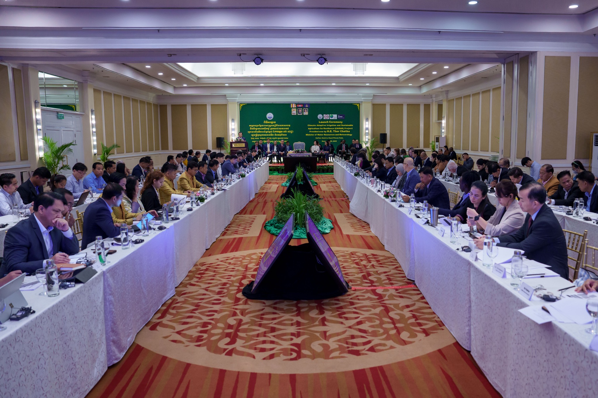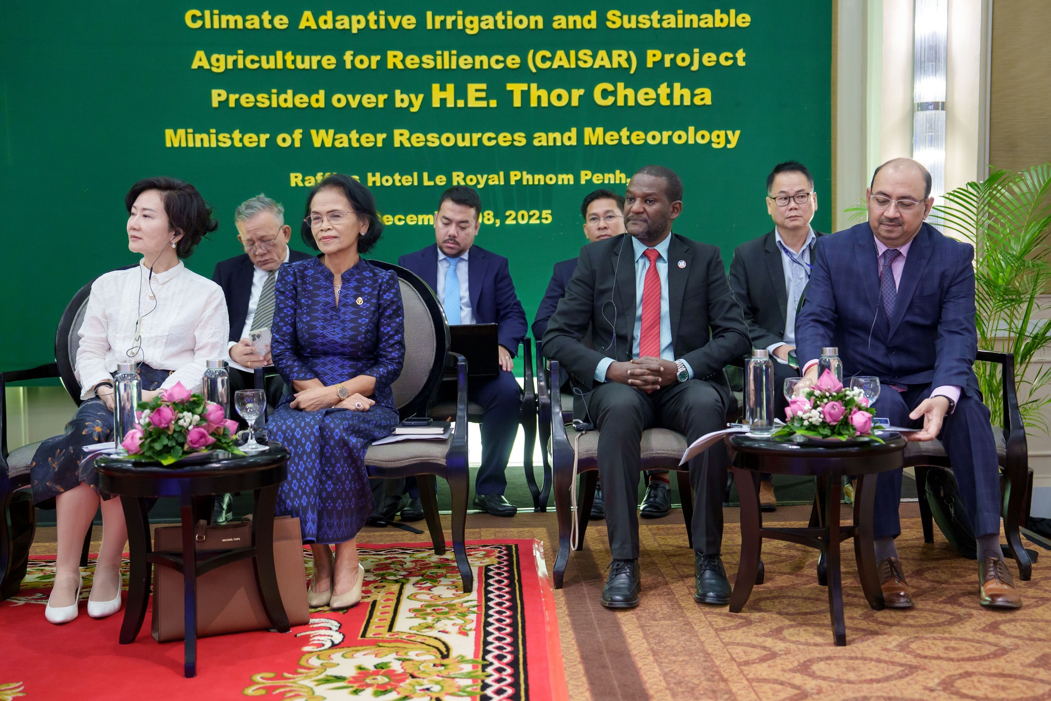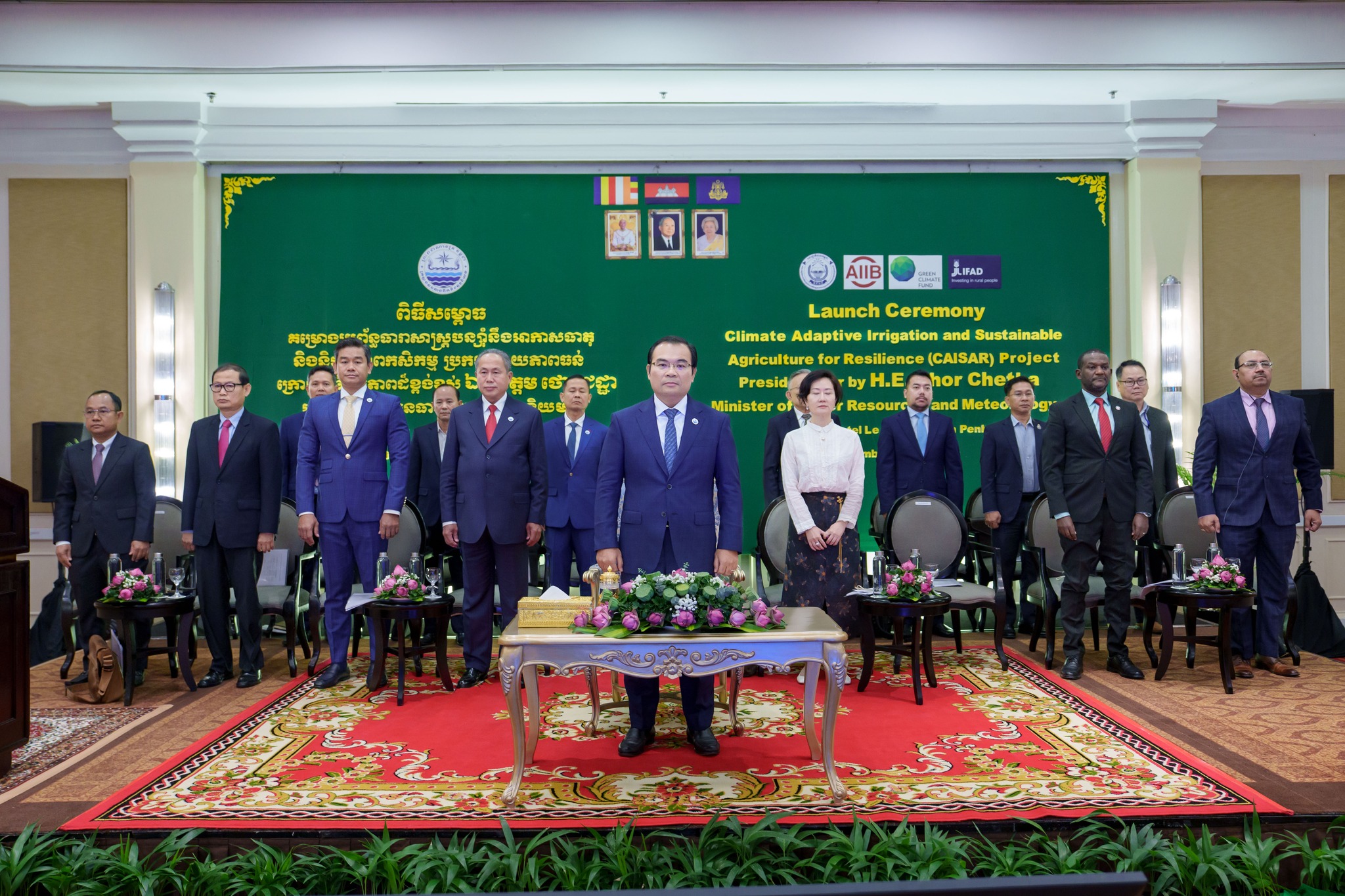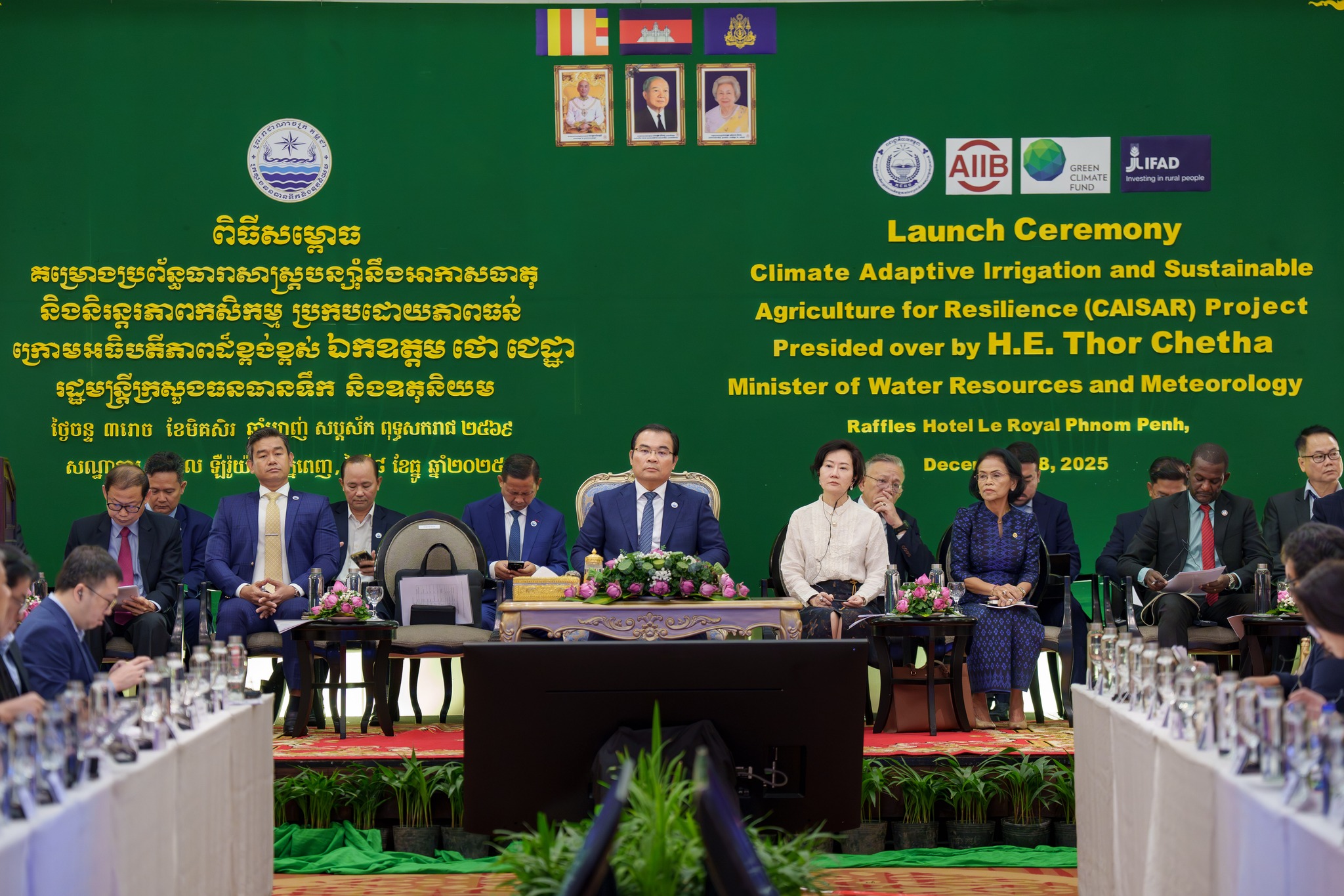 នាព្រឹកថ្ងៃចន្ទ ៣រោច ខែមិគសិរ ឆ្នាំម្សាញ់ សប្តស័ក ពុទ្ធសករាជ ២៥៦៩ ត្រូវនឹងថ្ងៃទី៨ ខែធ្នូ ឆ្នាំ២០២៥ នេះ ឯកឧត្តម ថោ ជេដ្ឋា រដ្ឋមន្ត្រីក្រសួងធនធានទឹក និងឧតុនិយម បានអញ្ជើញជាអធិបតីភាពដ៏ខ្ពង់ខ្ពស់ ក្នុងពិធីសម្ពោធដាក់ឱ្យអនុវត្តជាផ្លូវការគម្រោងប្រព័ន្ធធារាសាស្ត្របន្ស៊ាំនឹងអាកាសធាតុ និងនិរន្តរភាពកសិកម្មប្រកបដោយភាពធន់(CAISAR) ក្រោមសហហិរញ្ញប្បទានរបស់ធនាគារវិនិយោគហេដ្ឋារចនាសម្ព័ន្ធអាស៊ី(AIIB) មូលនិធិអន្តរជាតិសម្រាប់អភិវឌ្ឍន៍កសិកម្ម(IFAD) និងមូលនិធិអាកាសធាតុបៃតង(GCF) នៅសាលប្រជុំនៃសណ្ឋាគារឡឺរូយ៉ាល់។