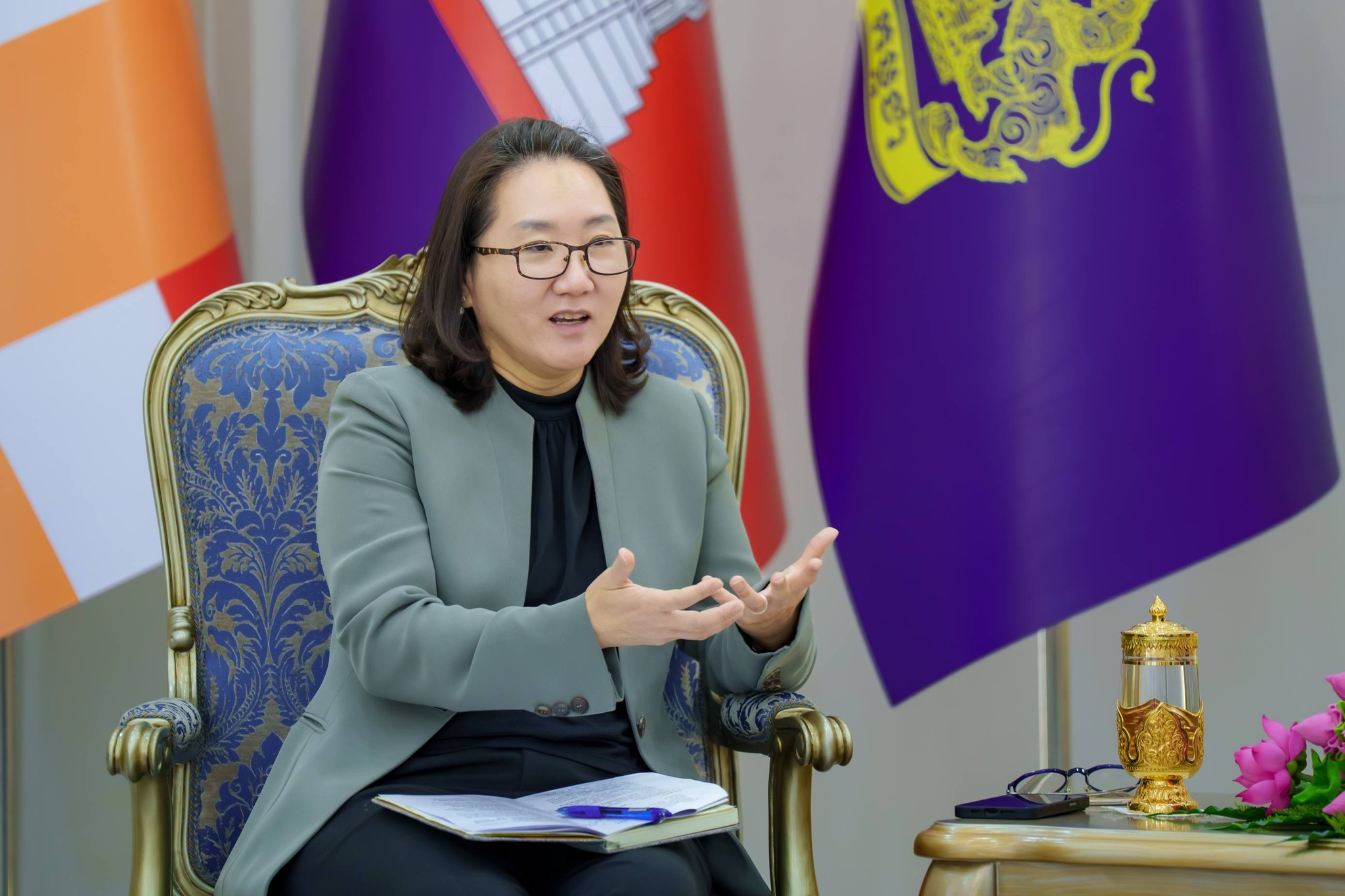 នាព្រឹកថ្ងៃព្រហស្បតិ៍ ១២រោច ខែបុស្ស ឆ្នាំម្សាញ់ សប្តស័ក ពុទ្ធសករាជ ២៥៦៩ ត្រូវនឹងថ្ងៃទី១៥ ខែមករា ឆ្នាំ២០២៦នេះ នៅទីស្ដីការក្រសួង ឯកឧត្តម ថោ ជេដ្ឋា រដ្ឋមន្ត្រីក្រសួងធនធានទឹក និងឧតុនិយម បានអនុញ្ញាតឱ្យលោកស្រី ផាក យ៉ុងណាន (Park Kyung-nan) នាយិកាកម្មវិធីស្បៀងអាហារពិភពលោកប្រចាំប្រទេសកម្ពុជា ដឹកនាំគណៈប្រតិភូចូលជួបសម្ដែងការគួរសម និងពិភាក្សាការងារដើម្បីពង្រឹងកិច្ចសហប្រតិបត្តិការភាពជាដៃគូ និងស្វែងរកឱកាសសហការបន្ថែម។