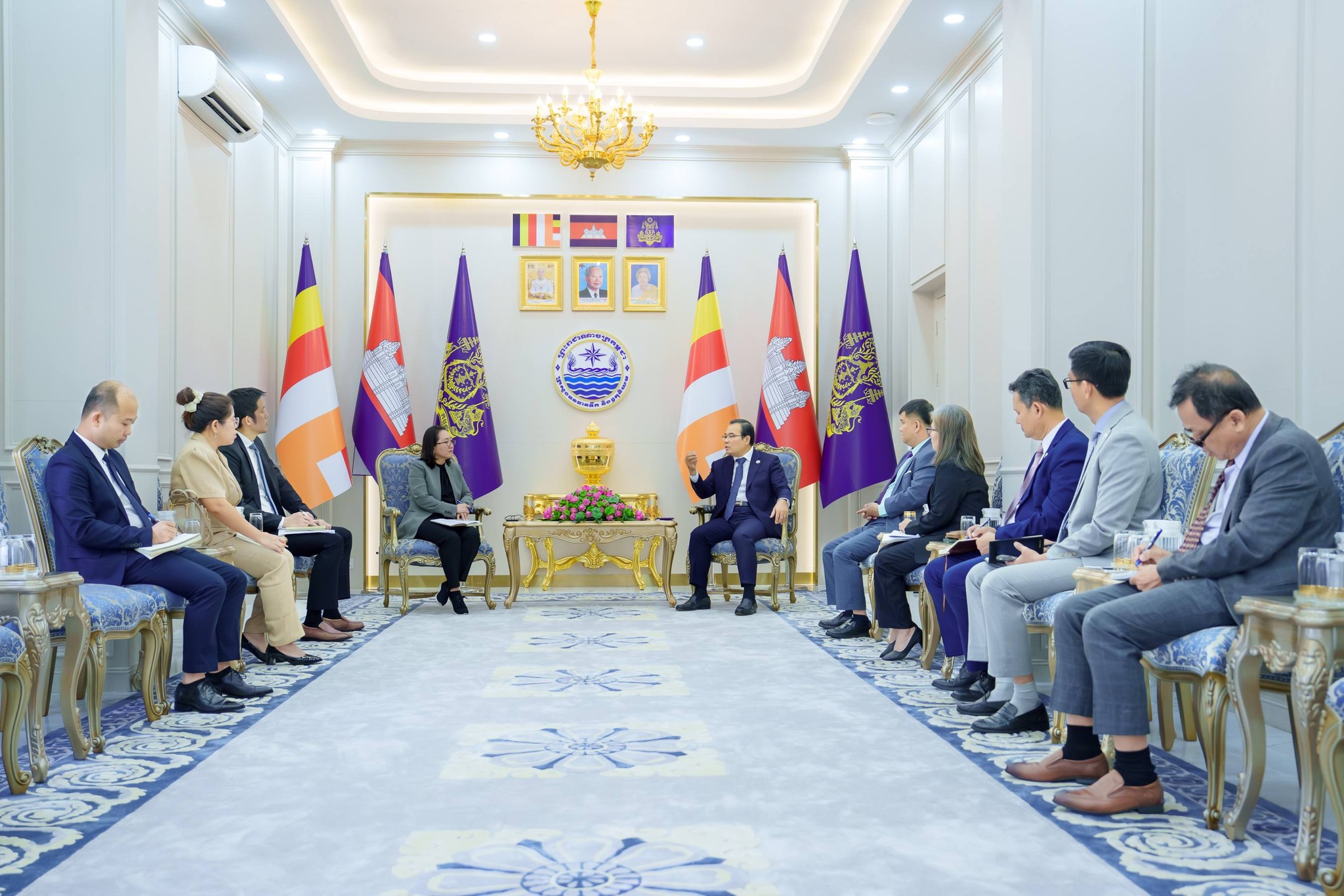 ក្នុងកិច្ចជំនួប ឯកឧត្តមរដ្ឋមន្ត្រី បានសម្ដែងនូវការស្វាគមន៍យ៉ាងកក់ក្ដៅចំពោះគណៈប្រតិភូកម្មវិធីស្បៀងអាហារពិភពលោក និងបានថ្លែងនូវការអបអរសាទរចំពោះលោកស្រី ផាក យ៉ុងណាន ដែលត្រូវបានតែងតាំងជានាយិកាកម្មវិធីស្បៀងអាហារពិភពលោកប្រចាំប្រទេសកម្ពុជា ព្រមទាំងបានវាយតម្លៃខ្ពស់ចំពោះកម្មវិធីស្បៀងអាហារពិភពលោក (WFP) ដែលតែងតែគាំទ្រយ៉ាងសកម្មនូវគំនិតផ្តួចផ្តើមក្នុងការគ្រប់គ្រងហានិភ័យគ្រោះមហន្តរាយធម្មជាតិ ការការពារសង្គម និងការពង្រឹងអាហារូបត្ថម្ភដែលធន់នឹងអាកាសធាតុក្នុងតំបន់ ជាពិសេសការគាំទ្រ និងការរួមចំណែកជាបន្តបន្ទាប់ ចំពោះការអភិវឌ្ឍ និងការងារមនុស្សធម៌នៅប្រទេសកម្ពុជា។