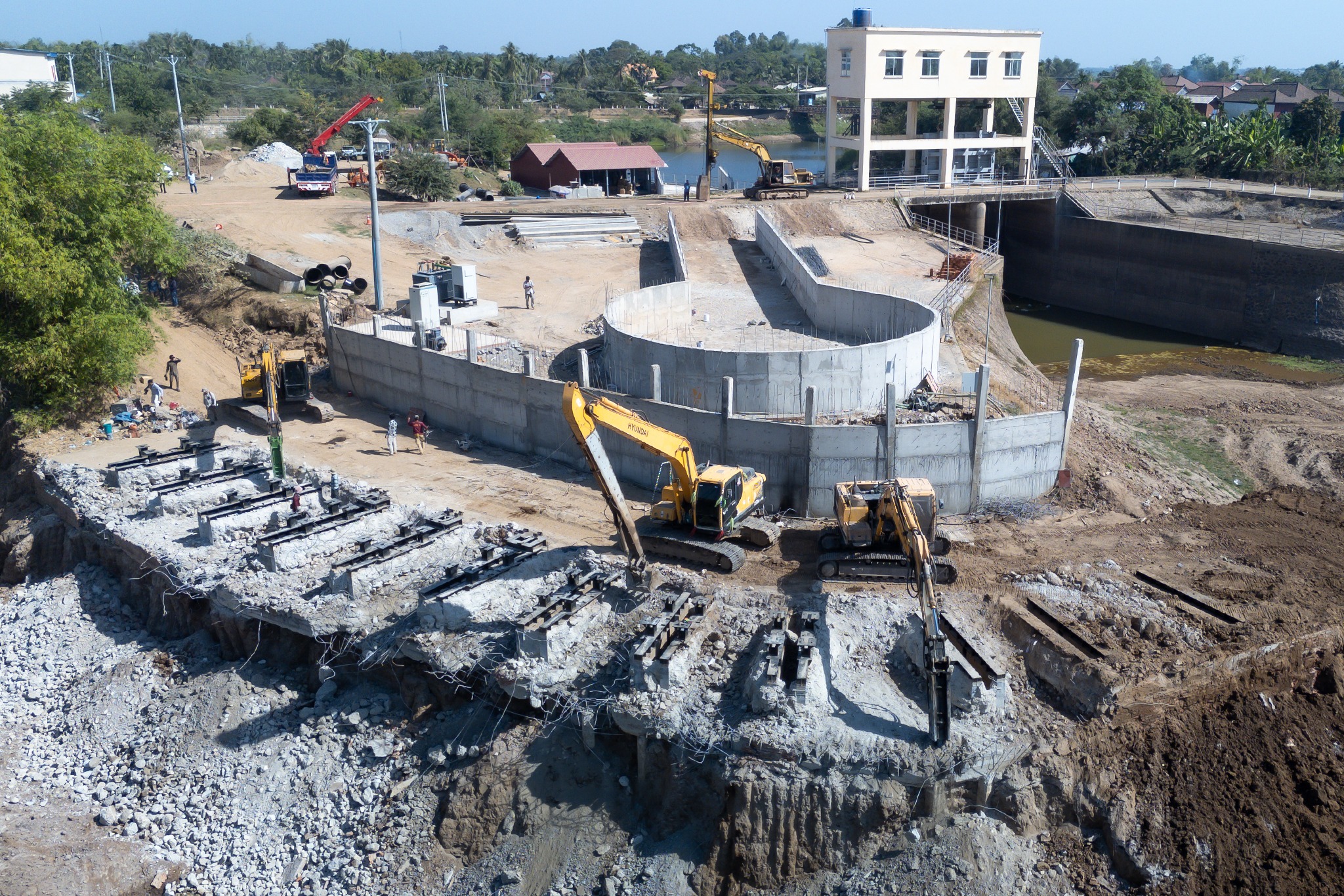 ក្នុងឱកាសនោះដែរ ឯកឧត្តមរដ្ឋមន្ត្រី ក៏បានអញ្ជើញចុះពិនិត្យជាក់ស្តែងការងារថែទាំស្ថានីយបូមទឹកនៃប្រព័ន្ធធារាសាស្ត្រព្រែកពោធិ៍ ដោយការបូមស្ដារភក់ដែលកកស្ទះនៅខាងមុខស្ថានីយ និងការងារជួសជុលឡើងវិញបន្ទប់ដាក់ម៉ាស៊ីនដែលមានទទឹង៥ម៉ែត្រ និងបណ្ដោយ១២ម៉ែត្រ ដែលមានទីតាំងស្ថិតក្នុងភូមិសាស្ត្រឃុំព្រែកពោធិ៍ ស្រុកស្រីសន្ធរ ខេត្តកំពង់ចាម។