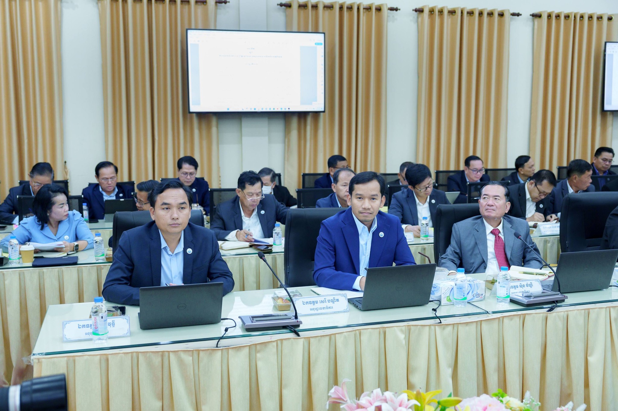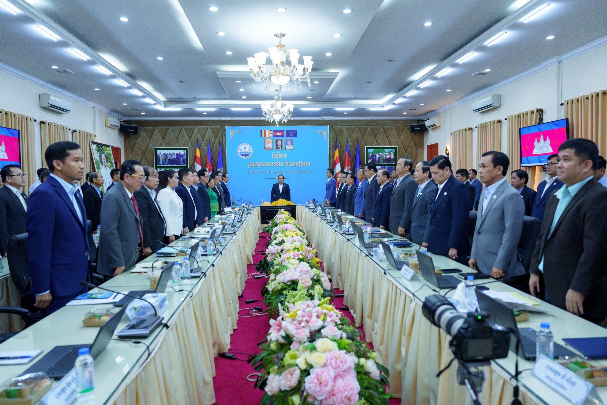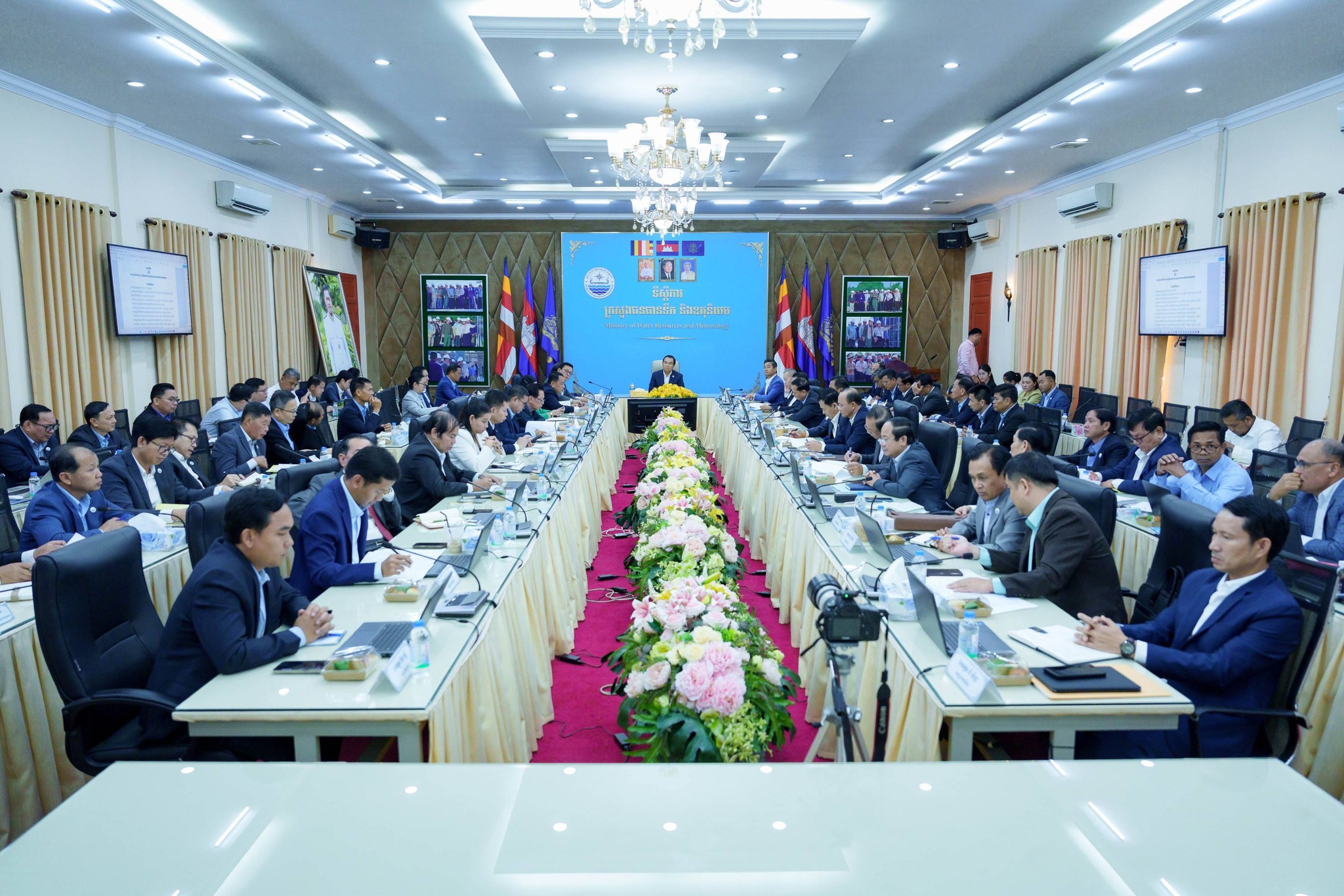 នាព្រឹកថ្ងៃព្រហស្បតិ៍ ៣កើត ខែផល្គុន ឆ្នាំម្សាញ់ សប្ដស័ក ពុទ្ធសករាជ ២៥៦៩ ត្រូវនឹងថ្ងៃទី១៩ ខែកុម្ភៈ ឆ្នាំ២០២៦ ឯកឧត្តម ថោ ជេដ្ឋា រដ្ឋមន្ត្រីក្រសួងធនធានទឹក និងឧតុនិយម បានអញ្ជើញជាអធិបតីភាពដ៏ខ្ពង់ខ្ពស់ដឹកនាំកិច្ចប្រជុំ ដើម្បីពិនិត្យ និងពិភាក្សាលើសេចក្ដីព្រាងអនុក្រឹត្យស្ដីពីការរៀបចំ និងការប្រព្រឹត្តទៅរបស់ក្រសួងធនធានទឹក និងឧតុនិយម នៅសាលប្រជុំរំដួលនៃទីស្ដីការក្រសួង។