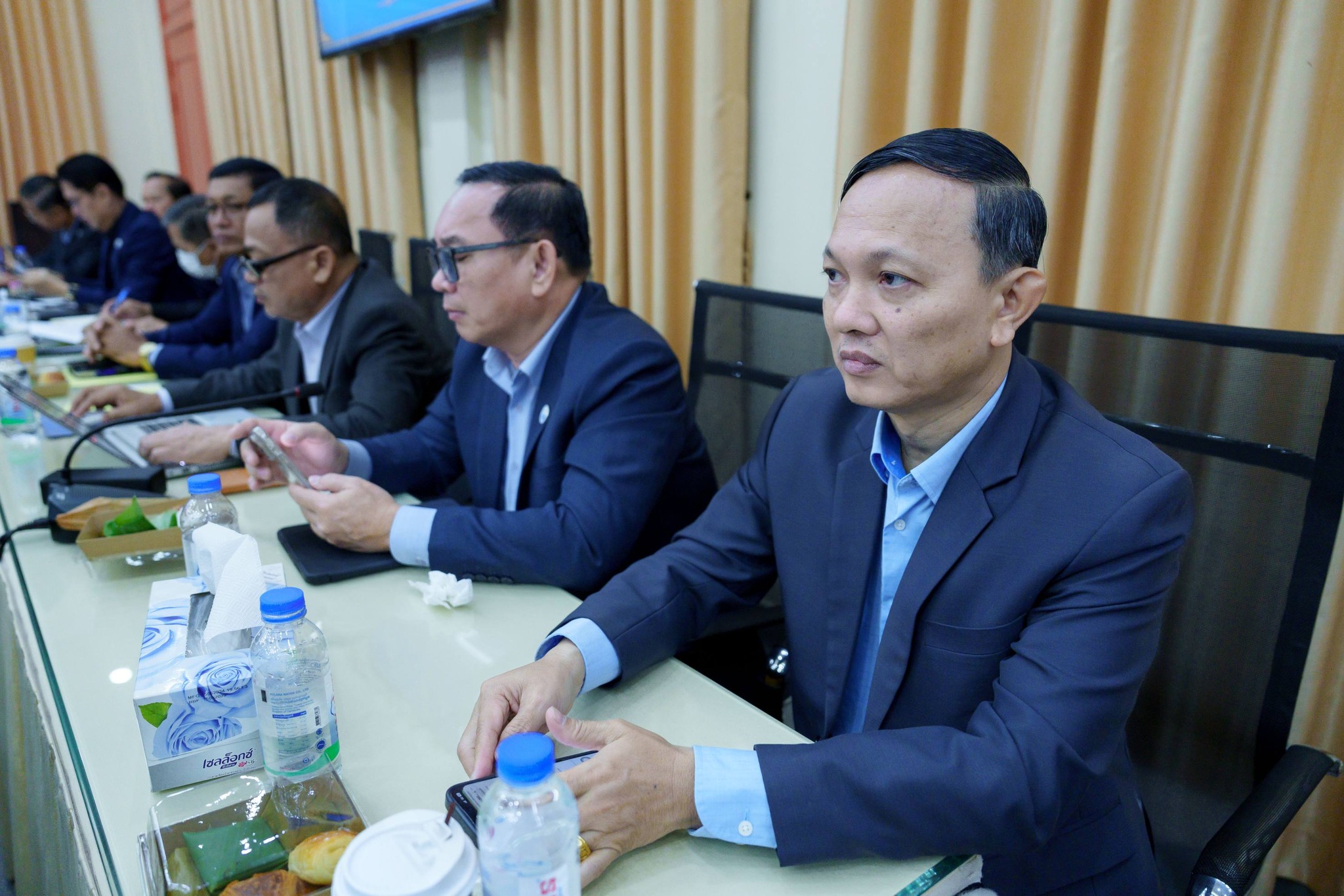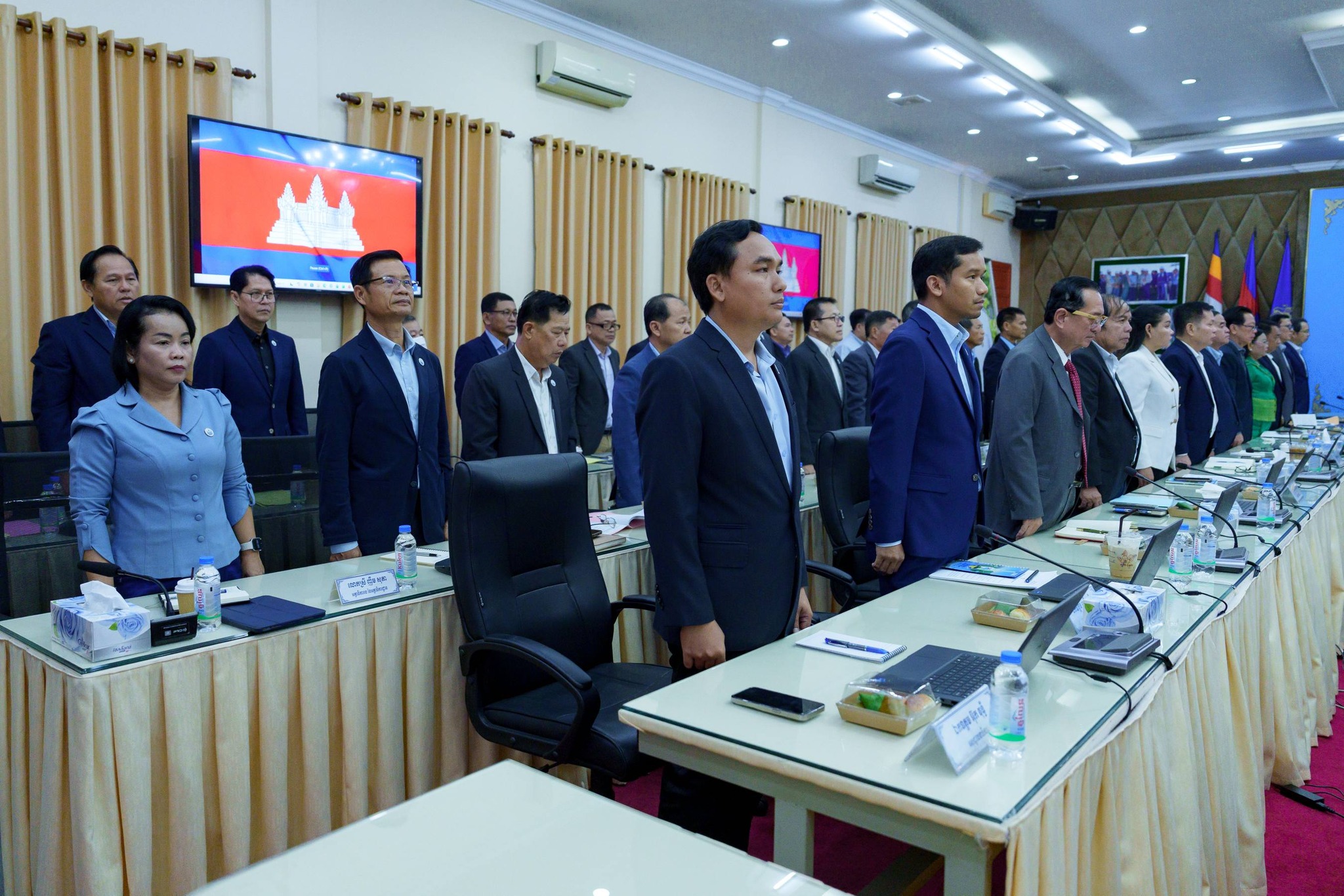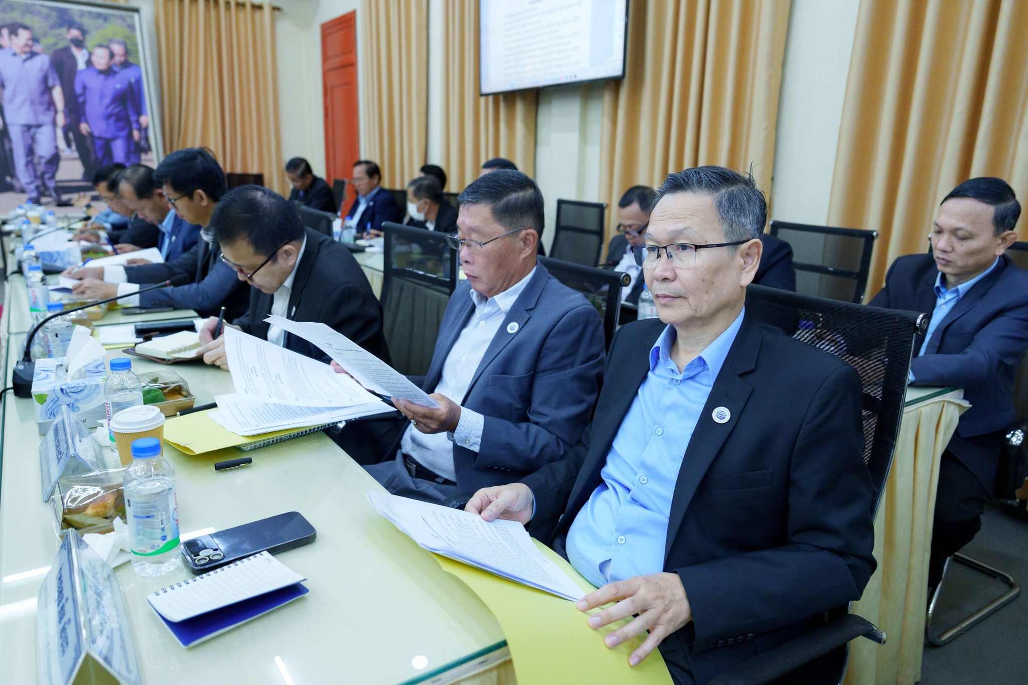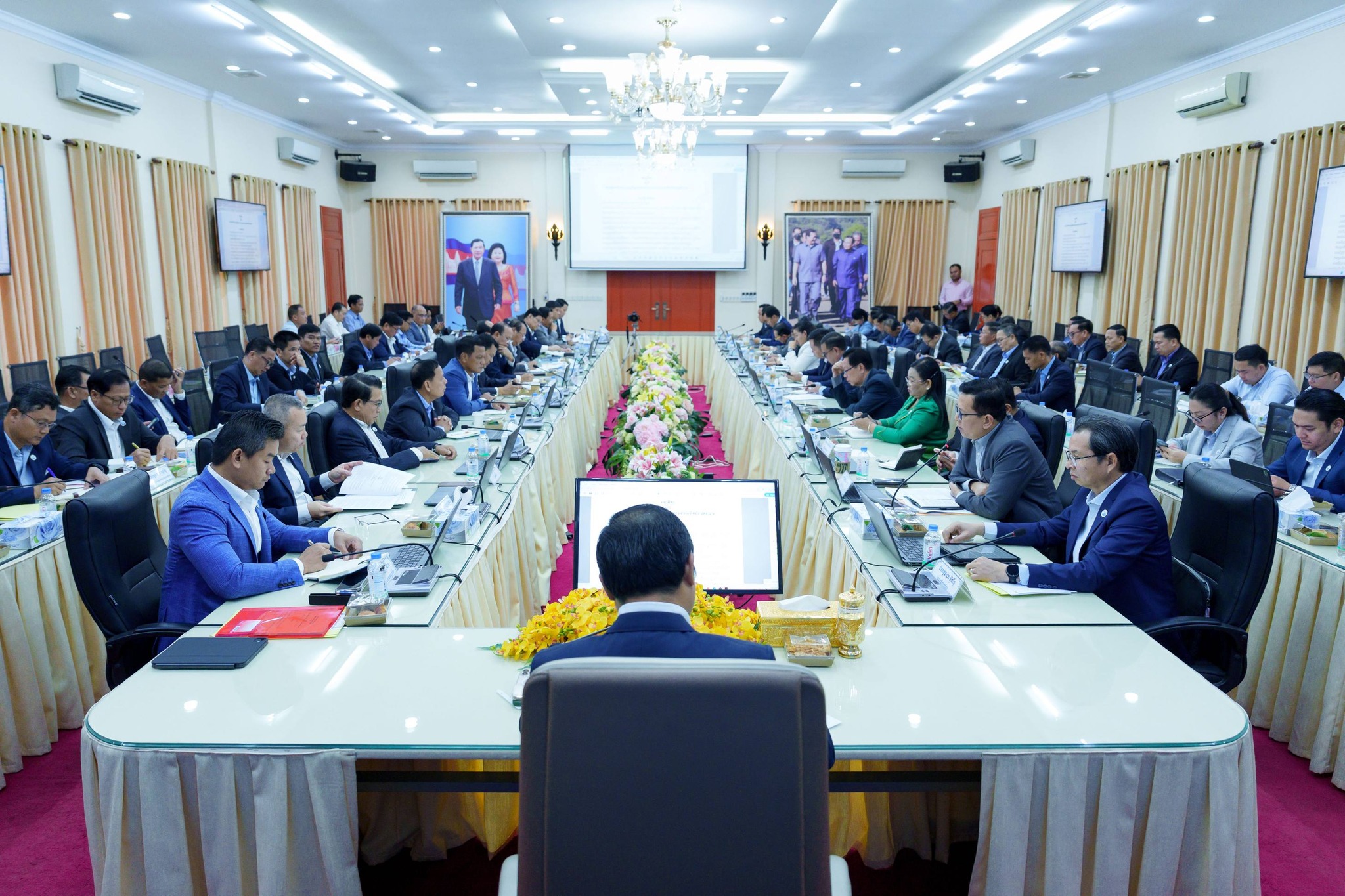 នាព្រឹកថ្ងៃព្រហស្បតិ៍ ៣កើត ខែផល្គុន ឆ្នាំម្សាញ់ សប្ដស័ក ពុទ្ធសករាជ ២៥៦៩ ត្រូវនឹងថ្ងៃទី១៩ ខែកុម្ភៈ ឆ្នាំ២០២៦ ឯកឧត្តម ថោ ជេដ្ឋា រដ្ឋមន្ត្រីក្រសួងធនធានទឹក និងឧតុនិយម បានអញ្ជើញជាអធិបតីភាពដ៏ខ្ពង់ខ្ពស់ដឹកនាំកិច្ចប្រជុំ ដើម្បីពិនិត្យ និងពិភាក្សាលើសេចក្ដីព្រាងអនុក្រឹត្យស្ដីពីការរៀបចំ និងការប្រព្រឹត្តទៅរបស់ក្រសួងធនធានទឹក និងឧតុនិយម នៅសាលប្រជុំរំដួលនៃទីស្ដីការក្រសួង។