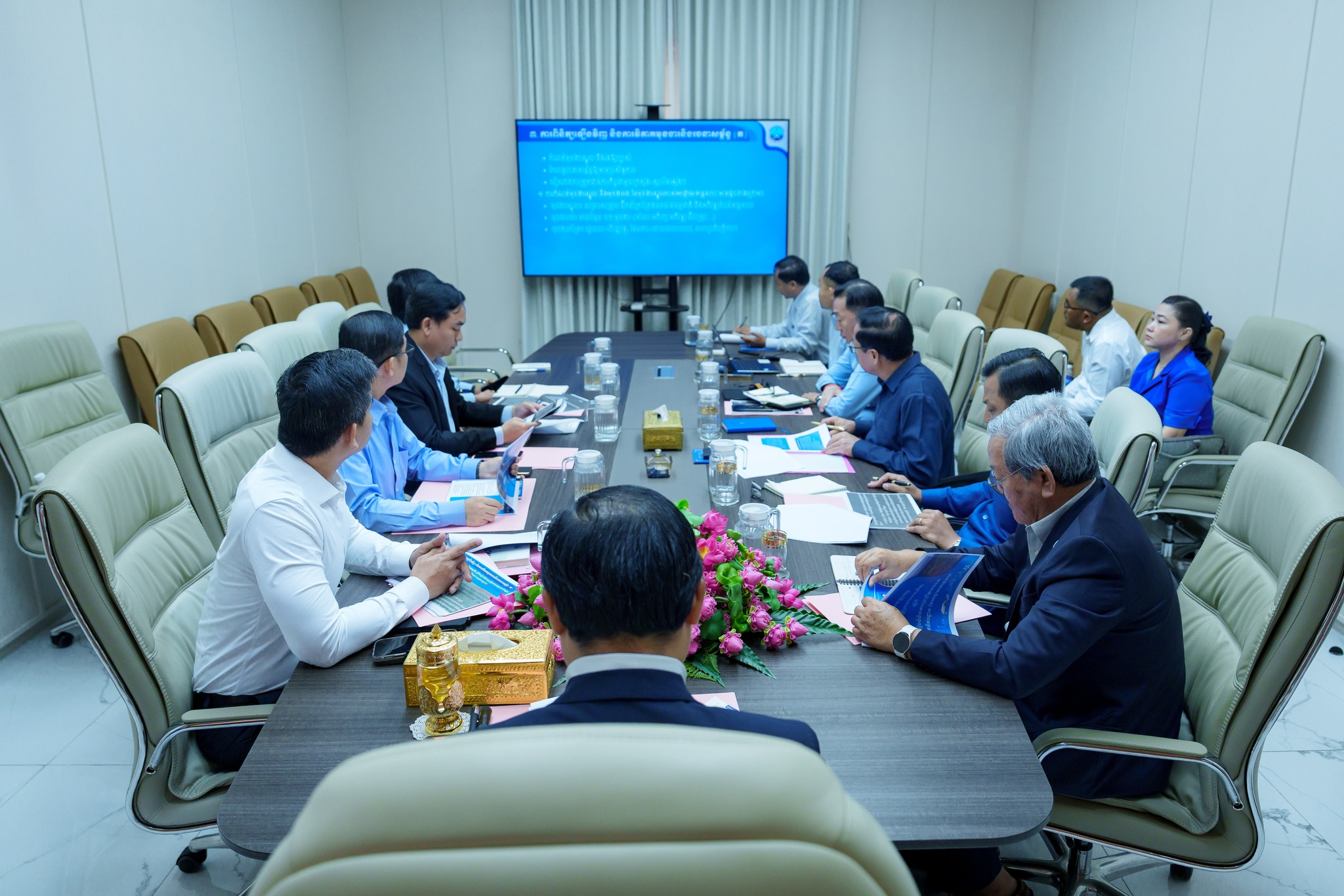 នាព្រឹកថ្ងៃសុក្រ ៤កើត ខែផល្គុន ឆ្នាំម្សាញ់ សប្ដស័ក ពុទ្ធសករាជ ២៥៦៩ ត្រូវនឹងថ្ងៃទី២០ ខែកុម្ភៈ ឆ្នាំ២០២៦ ឯកឧត្តម ថោ ជេដ្ឋា រដ្ឋមន្ត្រីក្រសួងធនធានទឹក និងឧតុនិយម និងជាប្រធានអាជ្ញាធរទន្លេសាប បានអញ្ជើញជាអធិបតីភាពដ៏ខ្ពង់ខ្ពស់ដឹកនាំកិច្ចប្រជុំ ដើម្បីពិនិត្យ និងពិភាក្សាលើសេចក្ដីព្រាងអនុក្រឹត្យស្ដីពីការរៀបចំ និងការប្រព្រឹត្តទៅរបស់អគ្គលេខាធិការដ្ឋាននៃអាជ្ញាធរទន្លេសាប នៅសាលប្រជុំនៃទីស្ដីការក្រសួងធនធានទឹក និងឧតុនិយម។