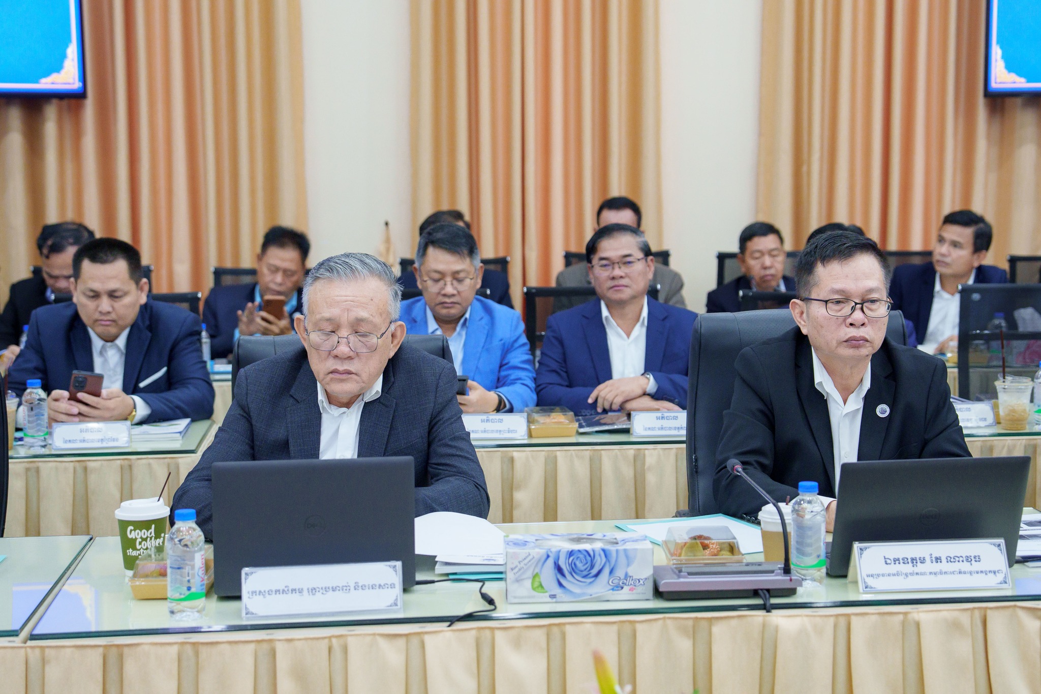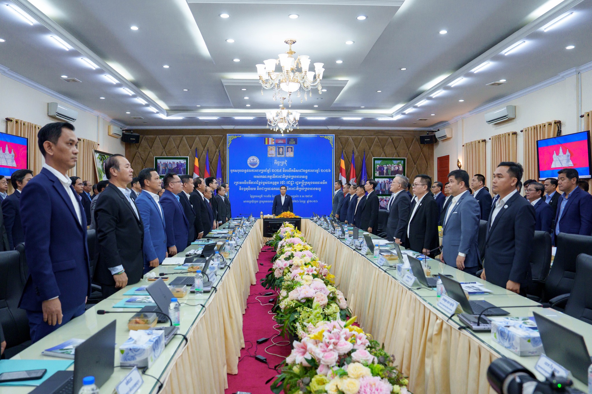 នាព្រឹកថ្ងៃព្រហស្បតិ៍ ១០កើត ខែផល្គុន ឆ្នាំម្សាញ់ សប្ដស័ក ពុទ្ធសករាជ ២៥៦៩ ត្រូវនឹងថ្ងៃទី២៦ ខែកុម្ភៈ ឆ្នាំ២០២៦នេះ ឯកឧត្តម ថោ ជេដ្ឋា រដ្ឋមន្ត្រីក្រសួងធនធានទឹក និងឧតុនិយម និងជាប្រធានគណៈកម្មាធិការជាតិគ្រប់គ្រងអាងទន្លេ បានអញ្ជើញជាអធិបតីភាពដ៏ខ្ពស់ខ្ពស់ដឹកនាំកិច្ចប្រជុំបូកសរុបលទ្ធផលការងារប្រចាំឆ្នាំ២០២៥ និងលើកទិសដៅបន្តការងារឆ្នាំ២០២៦ របស់លេខាធិការដ្ឋានគណៈកម្មាធិការជាតិគ្រប់គ្រងអាងទន្លេ នៅសាលប្រជុំរំដួលនៃទីស្ដីការក្រសួងធនធានទឹក និងឧតុនិយម។