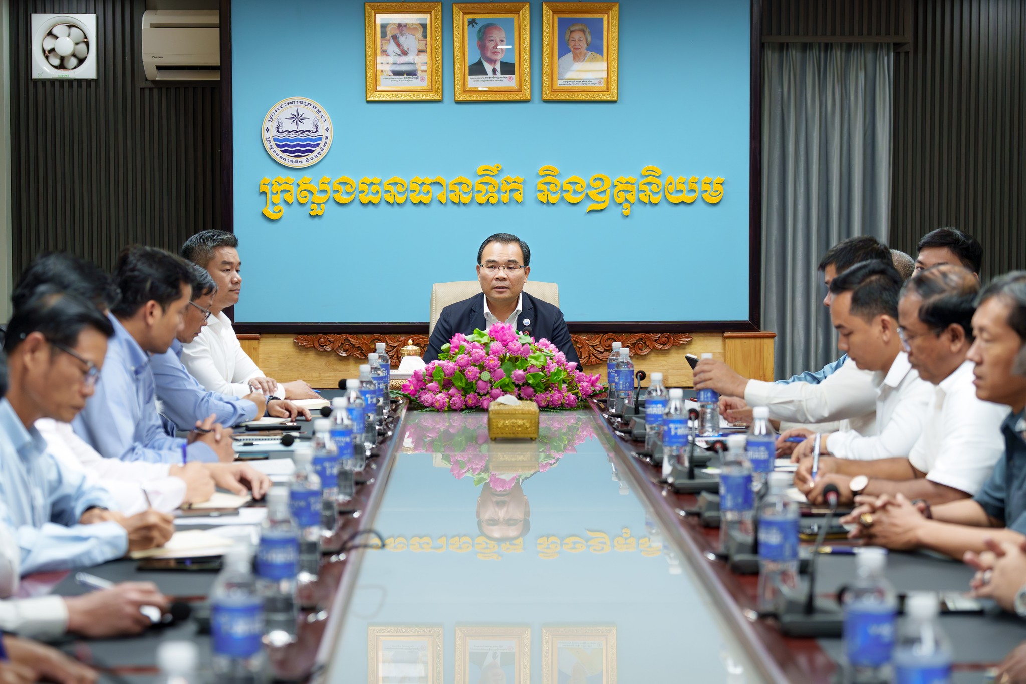 នៅសាលប្រជុំនៃទីស្ដីការក្រសួង នារសៀលថ្ងៃព្រហស្បតិ៍ ១០កើត ខែផល្គុន ឆ្នាំម្សាញ់ សប្ដស័ក ពុទ្ធសករាជ ២៥៦៩ ត្រូវនឹងថ្ងៃទី២៦ ខែកុម្ភៈ ឆ្នាំ២០២៦នេះ ឯកឧត្តម ថោ ជេដ្ឋា រដ្ឋមន្ត្រីក្រសួងធនធានទឹក និងឧតុនិយម បានអញ្ជើញជាអធិបតីភាពដ៏ខ្ពស់ខ្ពស់ដឹកនាំកិច្ចប្រជុំ ដើម្បីពិនិត្យវឌ្ឍនភាពការងារគម្រោង និងពង្រឹងការអនុវត្តការងាររបស់អង្គភាពគ្រប់គ្រងគម្រោងដែលទើបបង្កើតថ្មីឱ្យកាន់តែមានប្រសិទ្ធភាព។