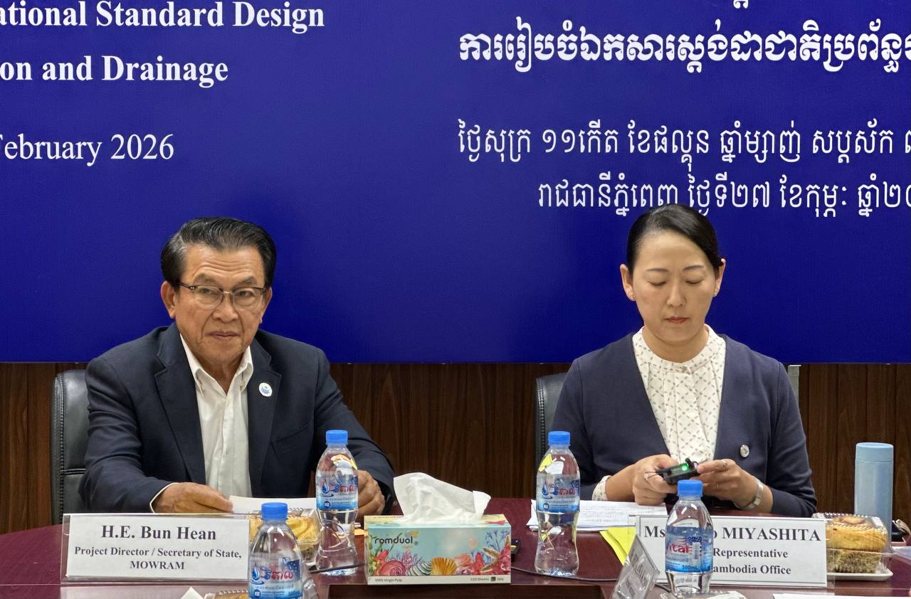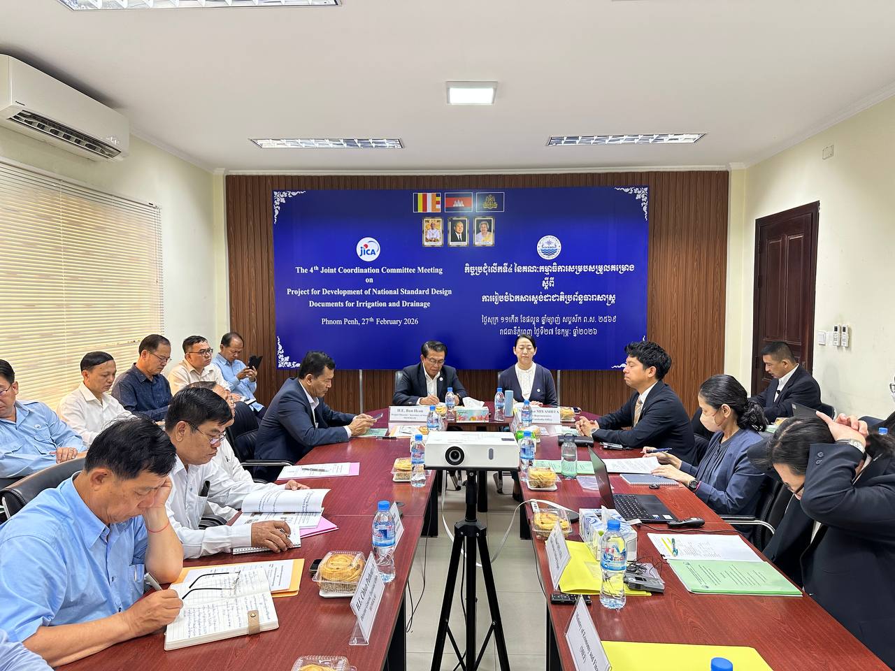នៅទីស្ដីការក្រសួង នាព្រឹកថ្ងៃសុក្រ ១១កើត ខែផល្គុន ឆ្នាំម្សាញ់ សប្តស័ក ពុទ្ធសករាជ ២៥៦៩ ត្រូវនឹងថ្ងៃទី២៧ ខែកុម្ភៈ ឆ្នាំ២០២៦ ឯកឧត្តម ប៊ុន ហ៊ាន រដ្ឋលេខាធិការ និងជានាយកគម្រោងរៀបចំស្តង់ដាជាតិប្រព័ន្ធធារាសាស្ត្រ ក្នុងនាមតំណាងដ៏ខ្ពង់ខ្ពស់ ឯកឧត្តម ថោ ជេដ្ឋា រដ្ឋមន្ត្រីក្រសួងធនធានទឹក និងឧតុនិយម បានអញ្ជើញជាអធិបតីក្នុងពិធីបើកកិច្ចប្រជុំគណៈកម្មាធិការសម្របសម្រួលលើកទី៤ (The 4th Joint Coordinating Committee Meeting) នៃគម្រោងរៀបចំស្តង់ដាជាតិប្រព័ន្ធធារាសាស្ត្រនៅកម្ពុជា។