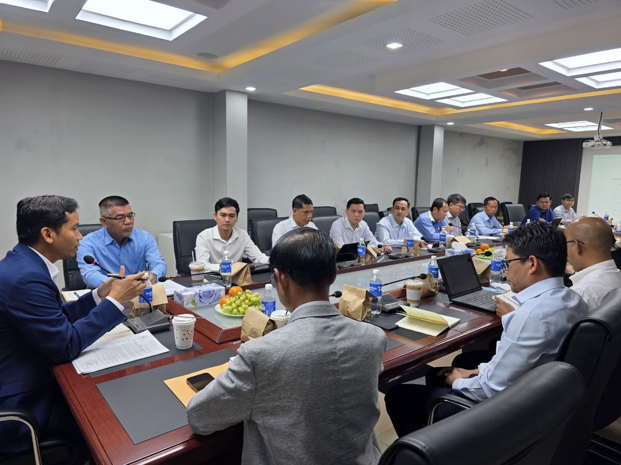 សូមជម្រាបថា កិច្ចប្រជុំនេះមានការអញ្ជើញចូលរួមពី លោក តាំង សុផាត អគ្គនាយករងនៃអគ្គនាយកដ្ឋានកិច្ចការបច្ចេកទេស និងជាប្រធានគ្រប់គ្រងគម្រោង ព្រមទាំងសមាជិកក្រុមការងារ និងទីប្រឹក្សាគម្រោងជាច្រើនរូប។ គោលបំណងសំខាន់នៃកិច្ចប្រជុំនេះ គឺដើម្បីពិនិត្យលើវឌ្ឍនភាពការងារ ពិភាក្សាដោះស្រាយបញ្ហាប្រឈម និងកំណត់ទិសដៅផែនការអនុវត្តបន្តសម្រាប់ឆ្នាំ២០២៦ ឱ្យកាន់តែមានភាពស៊ីសង្វាក់ និងប្រសិទ្ធភាពខ្ពស់ ស្របតាមកាលវិភាគដែលបានកំណត់។