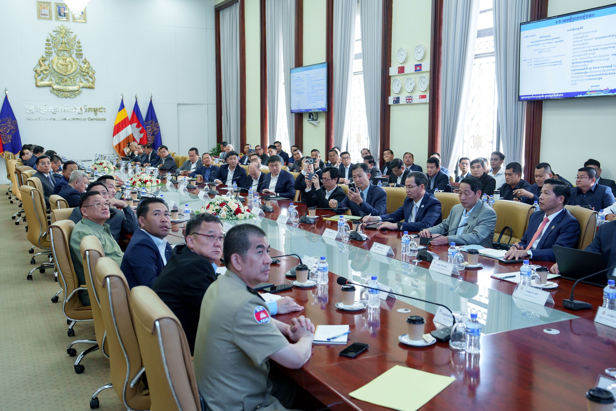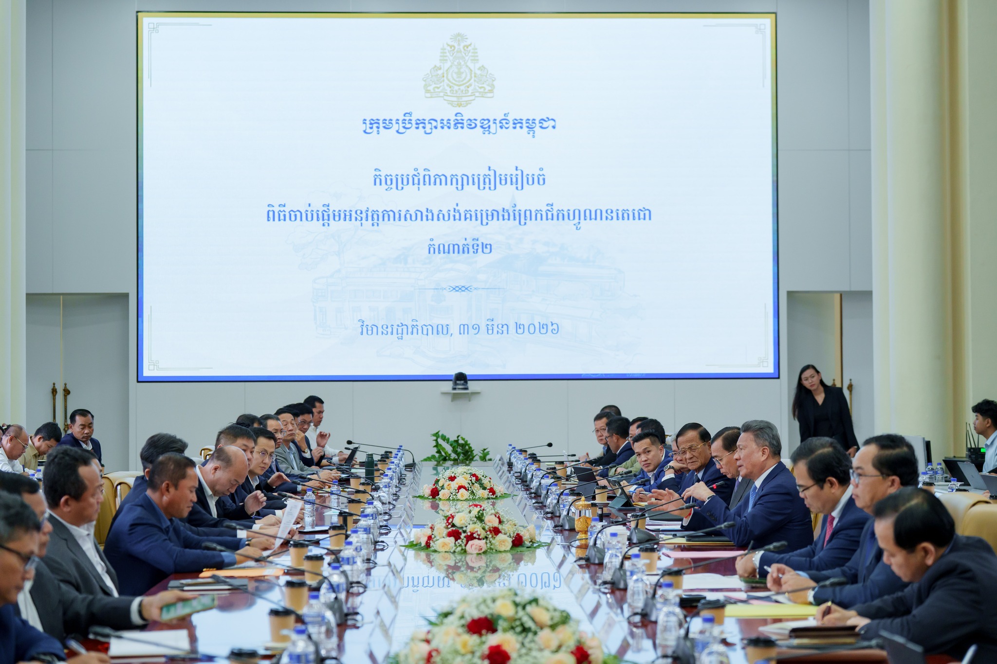 នាព្រឹកថ្ងៃអង្គារ ១៣កើត ខែចេត្រ ឆ្នាំម្សាញ់ សប្តស័ក ព.ស.២៥៦៩ ត្រូវនឹងថ្ងៃទី៣១ ខែមីនា ឆ្នាំ២០២៦ នៅទីស្ដីការក្រុមប្រឹក្សាអភិវឌ្ឍន៍កម្ពុជា ឯកឧត្ដម ថោ ជេដ្ឋា រដ្ឋមន្ដ្រីក្រសួងធនធានទឹក និងឧតុនិយម បានអញ្ជើញចូលរួមក្នុងកិច្ចប្រជុំពិភាក្សាត្រៀមរៀបចំពិធីចាប់ផ្ដើមអនុវត្តការសាងសង់គម្រោង «ព្រែកជីកហ្វូណនតេជោ» កំណាត់ទី២ ក្រោមអធិបតីភាពដ៏ខ្ពង់ខ្ពស់ ឯកឧត្ដម ស៊ុន ចាន់ថុល ឧបនាយករដ្ឋមន្ត្រី និងជាអនុប្រធានទី១ ក្រុមប្រឹក្សាអភិវឌ្ឍន៍កម្ពុជា។