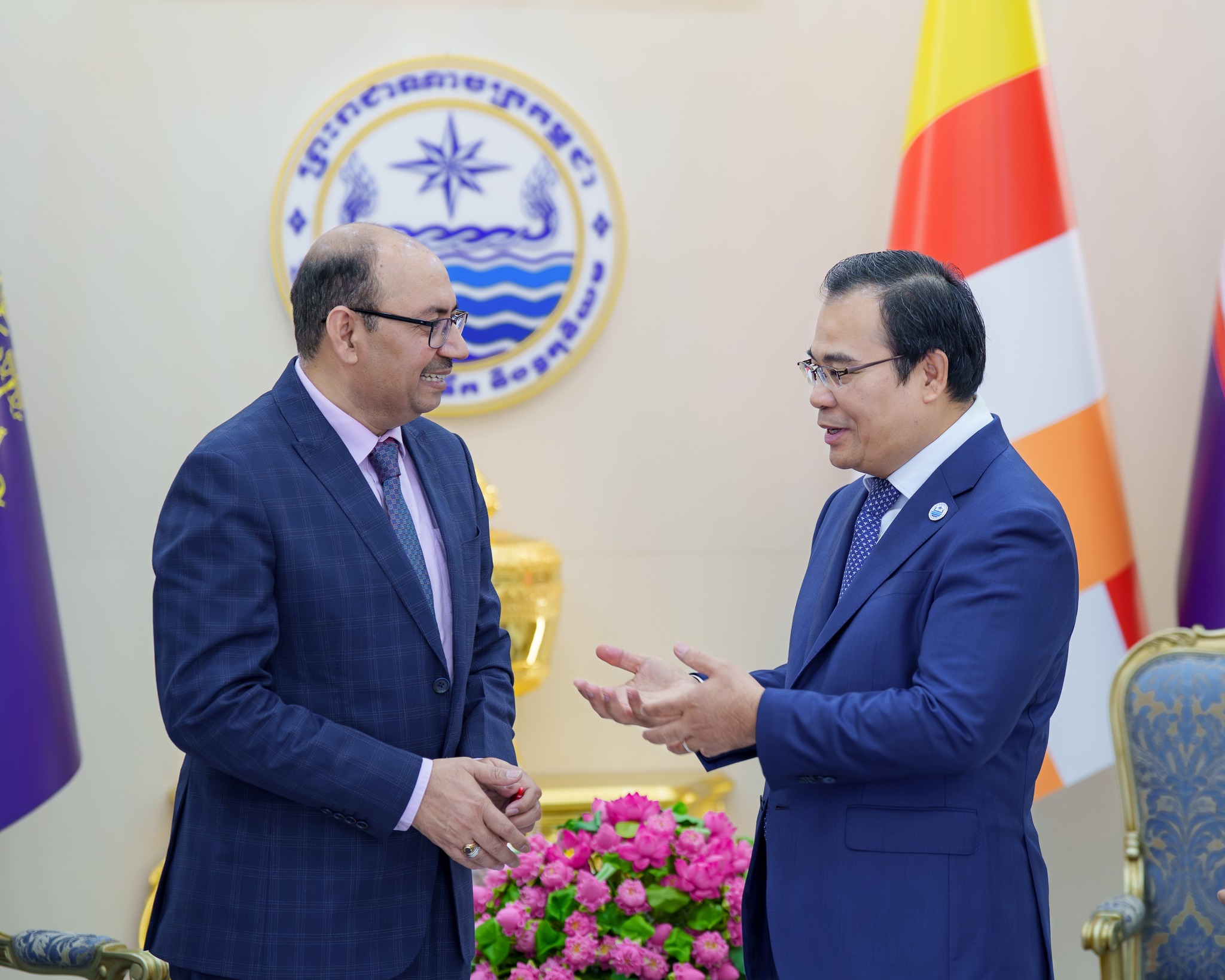 ឯកឧត្តមរដ្ឋមន្ត្រី បានមានប្រសាសន៍បញ្ជាក់ប្រាប់គណៈប្រតិភូពីអាទិភាពគន្លឹះរបស់ក្រសួងធនធានទឹក និងឧតុនិយម ដែលរួមមាន ១)ការធានាសន្តិសុខទឹក តាមរយៈការសាងសង់ ការស្តារឡើងវិញ និងការធ្វើទំនើបកម្មប្រព័ន្ធធារាសាស្ត្រពេញលេញ ២)ការពង្រឹងសេវាកម្មធារាសាស្ត្រ-ឧតុនិយម ការព្យាករ និងប្រព័ន្ធព្រមានទុកជាមុន ៣)ការអភិវឌ្ឍ និងការធ្វើទំនើបកម្មក្របខ័ណ្ឌច្បាប់ និងគោលនយោបាយ ៤)ការកែលម្អសមត្ថភាពស្ថាប័ន និងធនធានមនុស្ស និង ៥)ការពង្រឹងកិច្ចសហប្រតិបត្តិការជាមួយដៃគូអភិវឌ្ឍន៍នានា និងភ្នាក់ងាររដ្ឋាភិបាល។