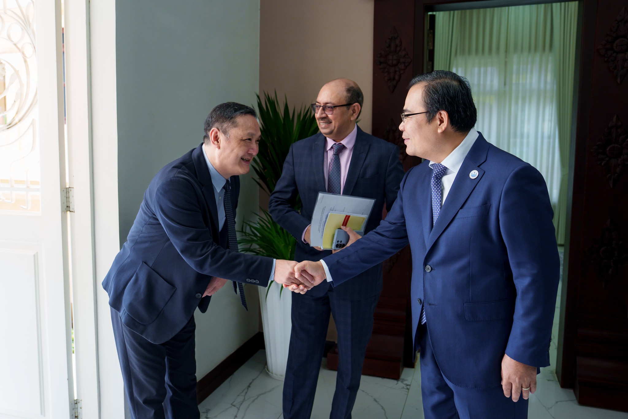 នាព្រឹកថ្ងៃសុក្រ ១រោច ខែចេត្រ ឆ្នាំម្សាញ់ សប្តស័ក ពុទ្ធសករាជ ២៥៦៩ ត្រូវនឹងថ្ងៃទី០៣ ខែមេសា ឆ្នាំ២០២៦នេះ ឯកឧត្តម ថោ ជេដ្ឋា រដ្ឋមន្ត្រីក្រសួងធនធានទឹក និងឧតុនិយម បានអនុញ្ញាតឱ្យលោក Rajesh Yadav អ្នកជំនាញវិនិយោគជាន់ខ្ពស់ធនាគារវិនិយោគហេដ្ឋារចនាសម្ព័ន្ធអាស៊ី(AIIB) ដឹកនាំគណៈប្រតិភូចូលជួបសម្ដែងការគួរសម និង ដើម្បីពិភាក្សាការងារគម្រោងប្រព័ន្ធធារាសាស្ត្របន្ស៊ាំនឹងអាកាសធាតុ និងនិរន្តរភាពកសិកម្ម ប្រកបដោយភាពធន់(CAISAR) នៅទីស្ដីការក្រសួងធនធានទឹក និងឧតុនិយម។