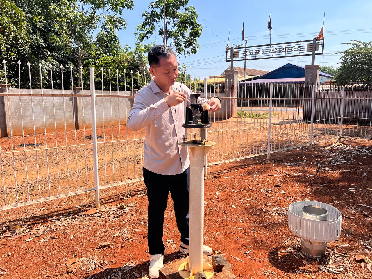 នាថ្ងៃអង្គារ ៥រោច ខែចេត្រ ឆ្នាំម្សាញ់ សប្តស័ក ពុទ្ធសករាជ ២៥៦៩ ត្រូវនឹងថ្ងៃទី៧ ខែមេសា ឆ្នាំ២០២៦ ក្រុមមន្ត្រីជំនាញបច្ចេកទេសនៃនាយកដ្ឋានឧតុនិយម របស់ក្រសួងធនធានទឹក និងឧតុនិយម បានបន្តចុះបំពេញបេសកកម្មពិនិត្យ ជួសជុល និងថែទាំស្ថានីយឧតុនិយមស្វ័យប្រវត្តិ ស្ថិតក្នុងភូមិសាស្ត្រខេត្តត្បូងឃ្មុំ ដើម្បីធានាបាននូវនិរន្តរភាព និងប្រសិទ្ធភាពនៃការបញ្ជូនទិន្នន័យអាកាសធាតុឱ្យបានត្រឹមត្រូវ និងទាន់ពេលវេលា។
