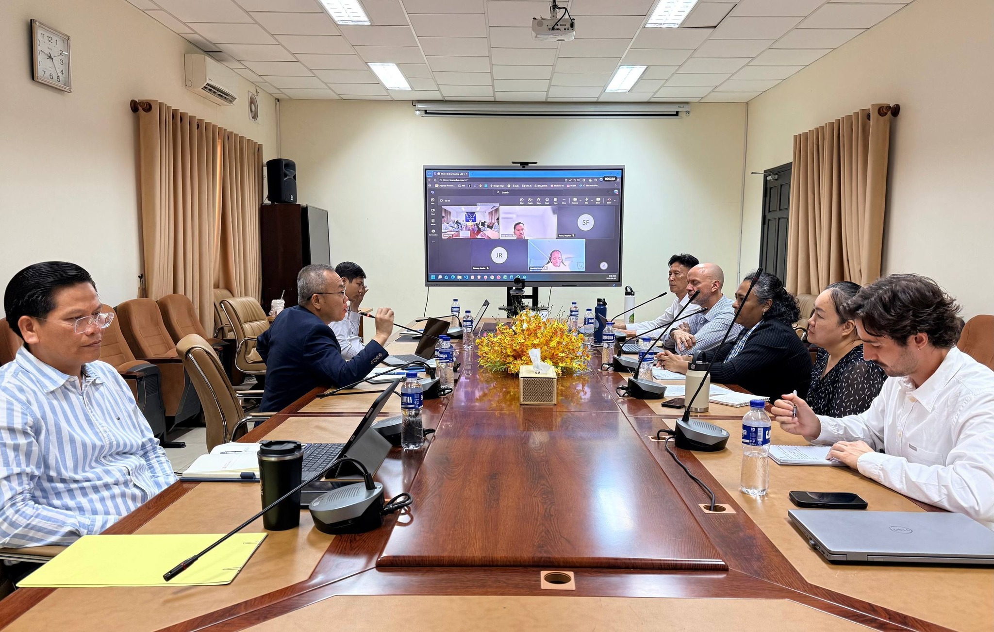 នាថ្ងៃសុក្រ ៨រោច ខែចេត្រ ឆ្នាំម្សាញ់ សប្តស័ក ពុទ្ធសករាជ ២៥៦៩ ត្រូវនឹងថ្ងៃទី១០ ខែមេសា ឆ្នាំ២០២៦ នៅសាលប្រជុំគណៈកម្មាធិការជាតិទន្លេមេគង្គកម្ពុជា ឯកឧត្តមបណ្ឌិត អាន ពេជ្រ ហត្ថដា រដ្ឋលេខាធិការ តំណាងដ៏ខ្ពង់ខ្ពស់ ឯកឧត្តម ថោ ជេដ្ឋា រដ្ឋមន្ត្រីក្រសួងធនធានទឹក និងឧតុនិយម បានអញ្ជើញដឹកនាំកិច្ចប្រជុំពិភាក្សាការងារជាមួយតំណាងក្រសួងការបរទេស និងពាណិជ្ជកម្មអូស្ត្រាលី (DFAT) និងក្រុមទីប្រឹក្សាបច្ចេកទេស ដើម្បីចាប់ផ្តើមអនុវត្តកម្មវិធីភាពជាដៃគូអូស្ត្រាលី-កម្ពុជា សម្រាប់ភាពធន់នឹងអាកាសធាតុ (ACP4Climate)។