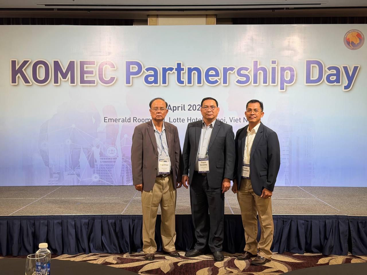 នាថ្ងៃព្រហស្បតិ៍ ៧កើត ខែពិសាខ ឆ្នាំមមី អដ្ឋស័ក ពុទ្ធសករាជ ២៥៦៩ ត្រូវនឹងថ្ងៃទី២៣ ខែមេសា ឆ្នាំ២០២៦ លោក ថាច់ សុវណ្ណា ប្រធាននាយកដ្ឋានគ្រប់គ្រង និងអភិរក្សធនធានទឹក ក្នុងនាមតំណាងដ៏ខ្ពង់ខ្ពស់ឯកឧត្ដម ថោ ជេដ្ឋា រដ្ឋមន្ដ្រីក្រសួងធនធានទឹក និងឧតុនិយម បានអញ្ជើញចូលរួមកិច្ចប្រជុំ KOMEC Partnership Day នៅទីក្រុងហាណូយ ប្រទេសវៀតណាម។