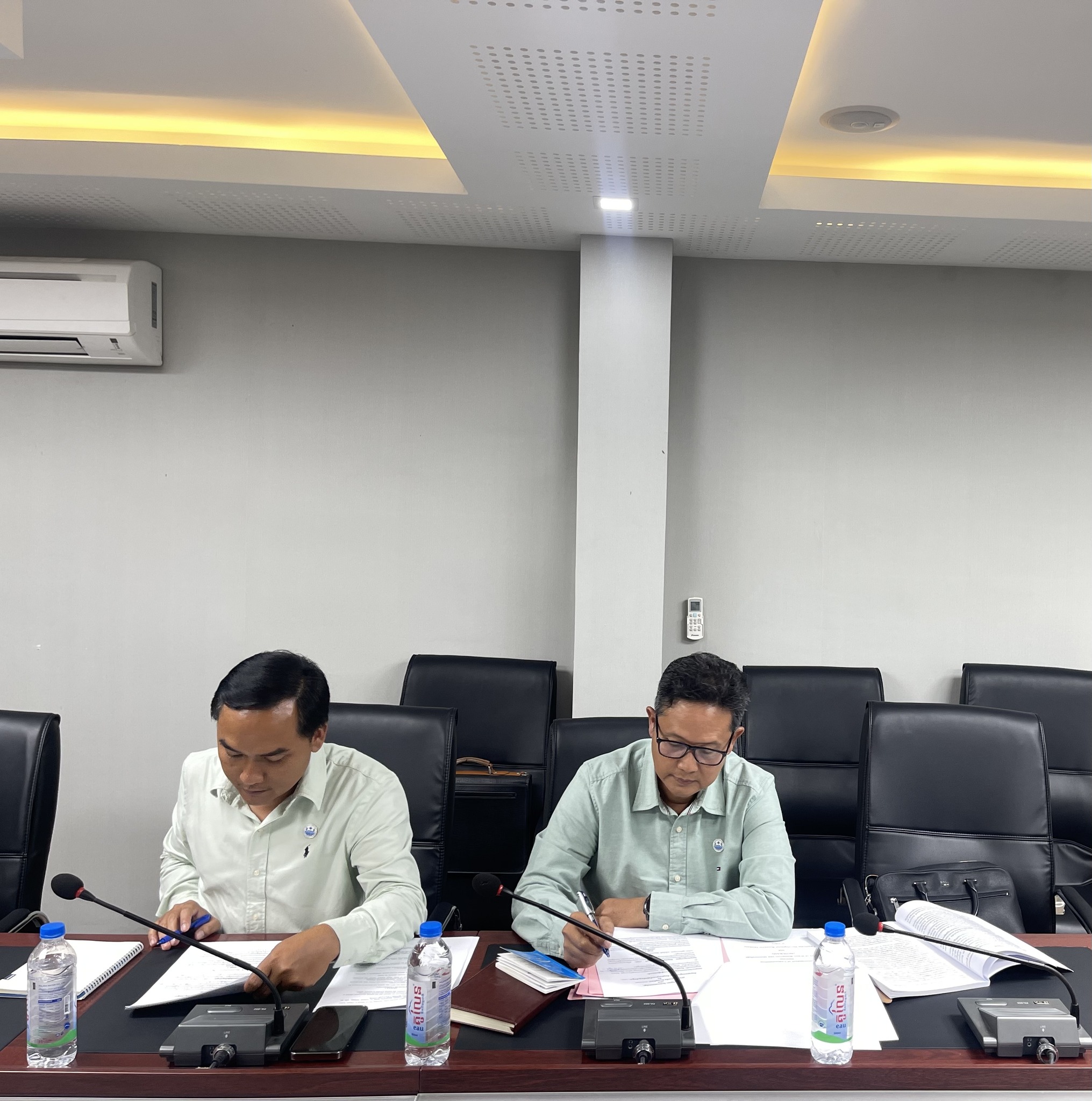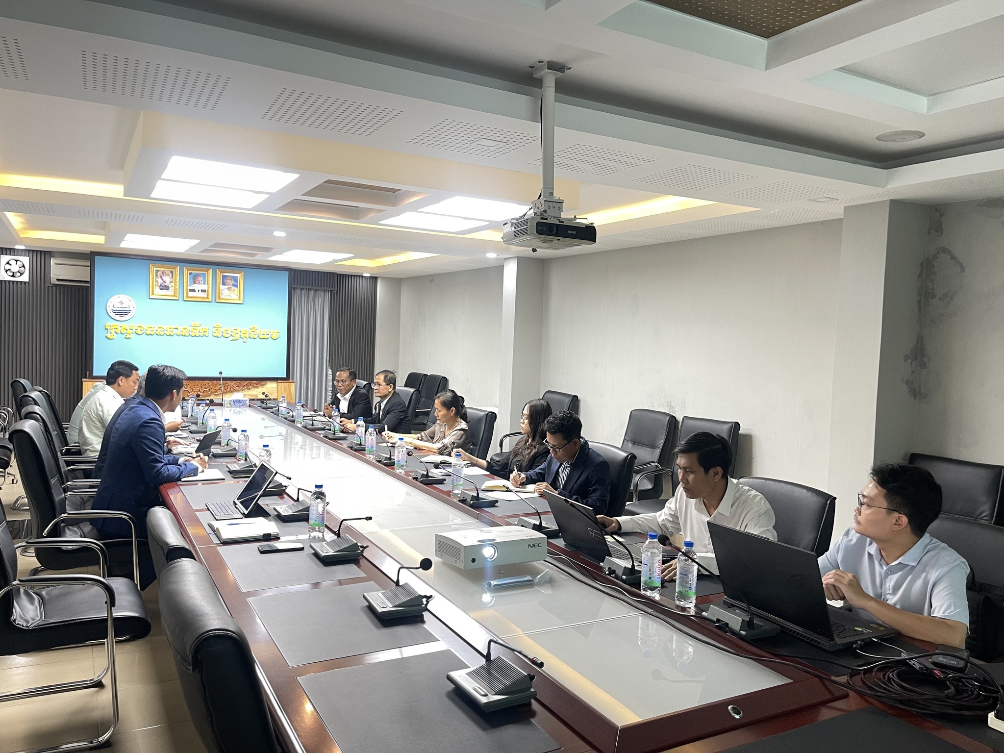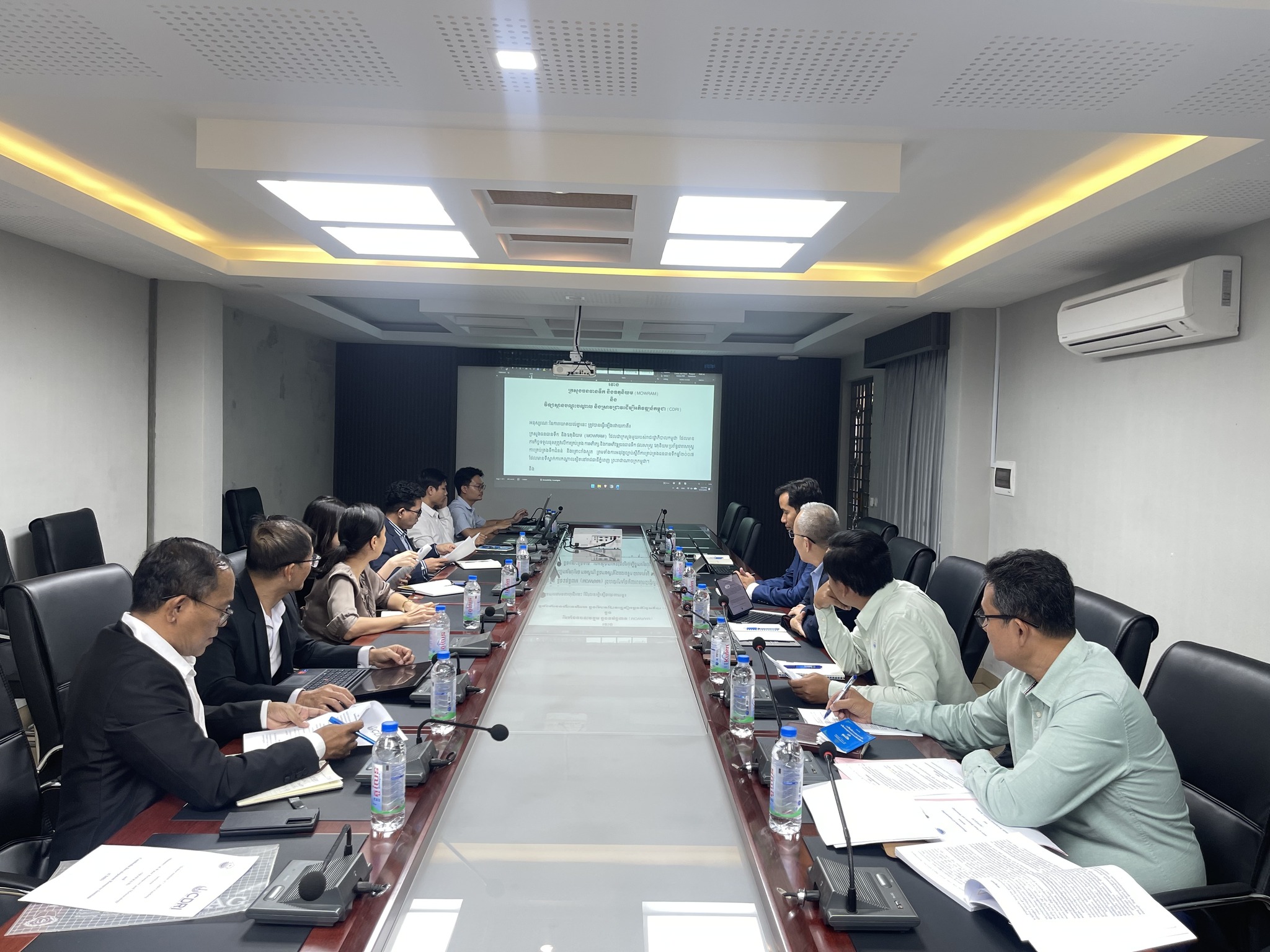 នារសៀលថ្ងៃព្រហស្បតិ៍ ៧កើត ខែពិសាខ ឆ្នាំមមី អដ្ឋស័ក ពុទ្ធសករាជ ២៥៦៩ ត្រូវនឹងថ្ងៃទី២៣ ខែមេសា ឆ្នាំ២០២៦ នៅទីស្តីការក្រសួងធនធានទឹក និងឧតុនិយម ឯកឧត្តមបណ្ឌិត អាន ពេជ្រ ហត្ថដា រដ្ឋលេខាធិការ ក្នុងនាមតំណាងដ៏ខ្ពង់ខ្ពស់របស់ ឯកឧត្តម ថោ ជេដ្ឋា រដ្ឋមន្ត្រីក្រសួងធនធានទឹក និងឧតុនិយម បានអញ្ជើញដឹកនាំកិច្ចប្រជុំពិភាក្សាជាមួយ លោកស្រីបណ្ឌិត អេង នេត្រា នាយិកាប្រតិបត្តិវិទ្យាស្ថានបណ្តុះបណ្តាល និងស្រាវជ្រាវដើម្បីអភិវឌ្ឍន៍កម្ពុជា (CDRI) ដើម្បីពិនិត្យ និងសម្រេចលើការព្រមព្រៀងចុងក្រោយនូវខ្លឹមសារសំខាន់ៗនៃអនុស្សរណៈនៃការយោគយល់គ្នា (MoU)។