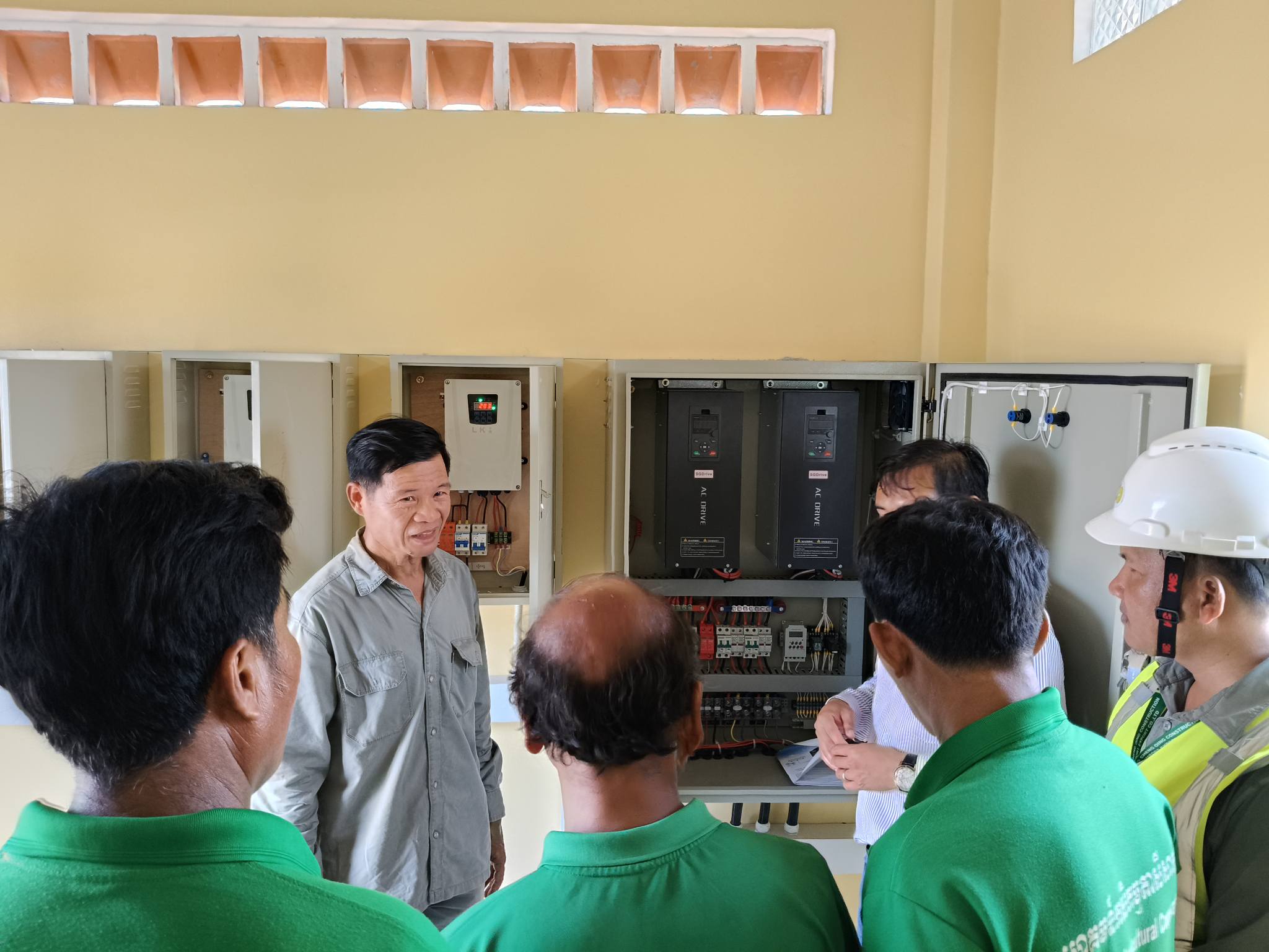 ក្រោយបញ្ចប់ពិធីបើកវគ្គបណ្តុះបណ្តាល លោកអគ្គនាយករង បានបន្តដឹកនាំក្រុមការងារចុះពិនិត្យវឌ្ឍនភាពការដ្ឋានដែលជិតបញ្ចប់ការសាងសង់ទាំងស្រុង។ សមាសភាគសំខាន់ៗនៃគម្រោងរួមមាន៖ ស្រះទឹក ២កន្លែង, អណ្តូង ៧កន្លែង, បណ្តាញទុយោមេ ៩,៥គីឡូម៉ែត្រ, បន្ទប់ប្រតិបត្តិការ ២កន្លែង, ស្ថានីយបូមទឹកបណ្តែត ២កន្លែង និងប្រព័ន្ធម៉ូទ័របូមទឹកដើរដោយថាមពលពន្លឺព្រះអាទិត្យ ៤គ្រឿង។ គម្រោងនេះនឹងចូលរួមចំណែកយ៉ាងសំខាន់ក្នុងការធ្វើទំនើបកម្មវិស័យកសិកម្មតាមរយៈការស្រោចស្រពដែលសន្សំសំចៃ និងមានប្រសិទ្ធភាព៕