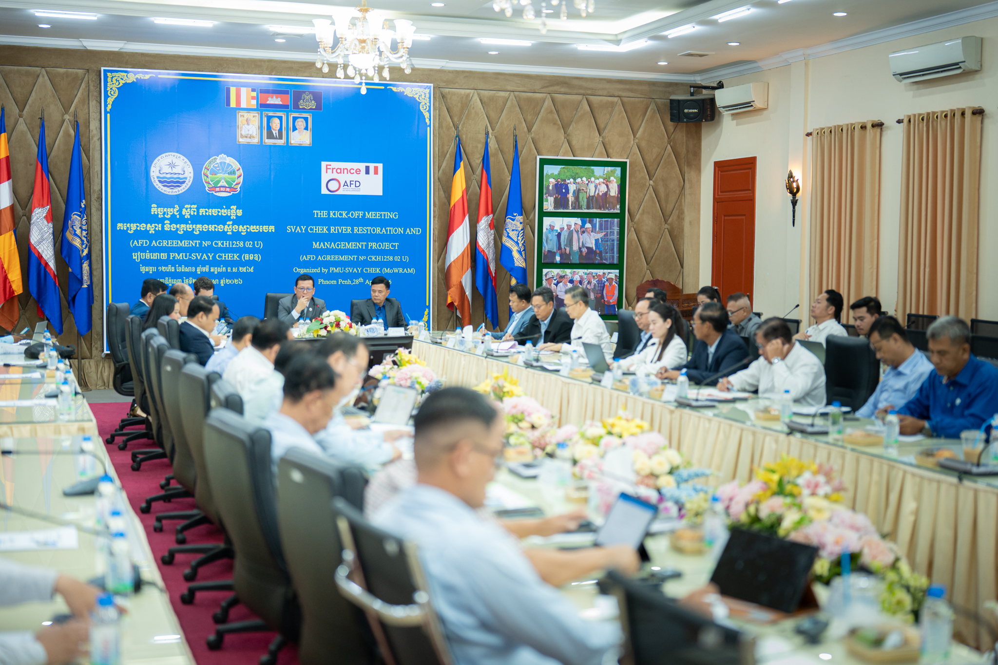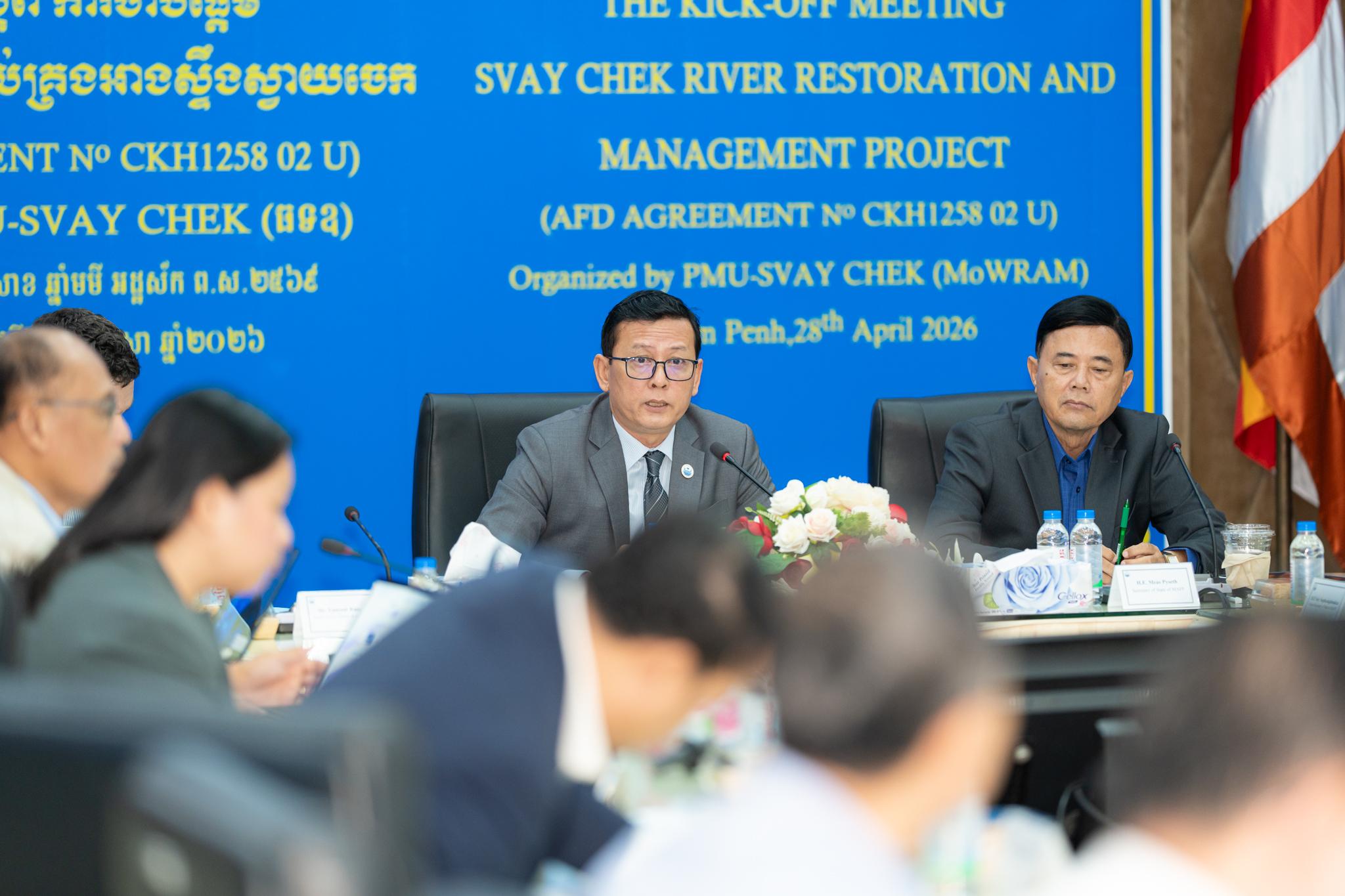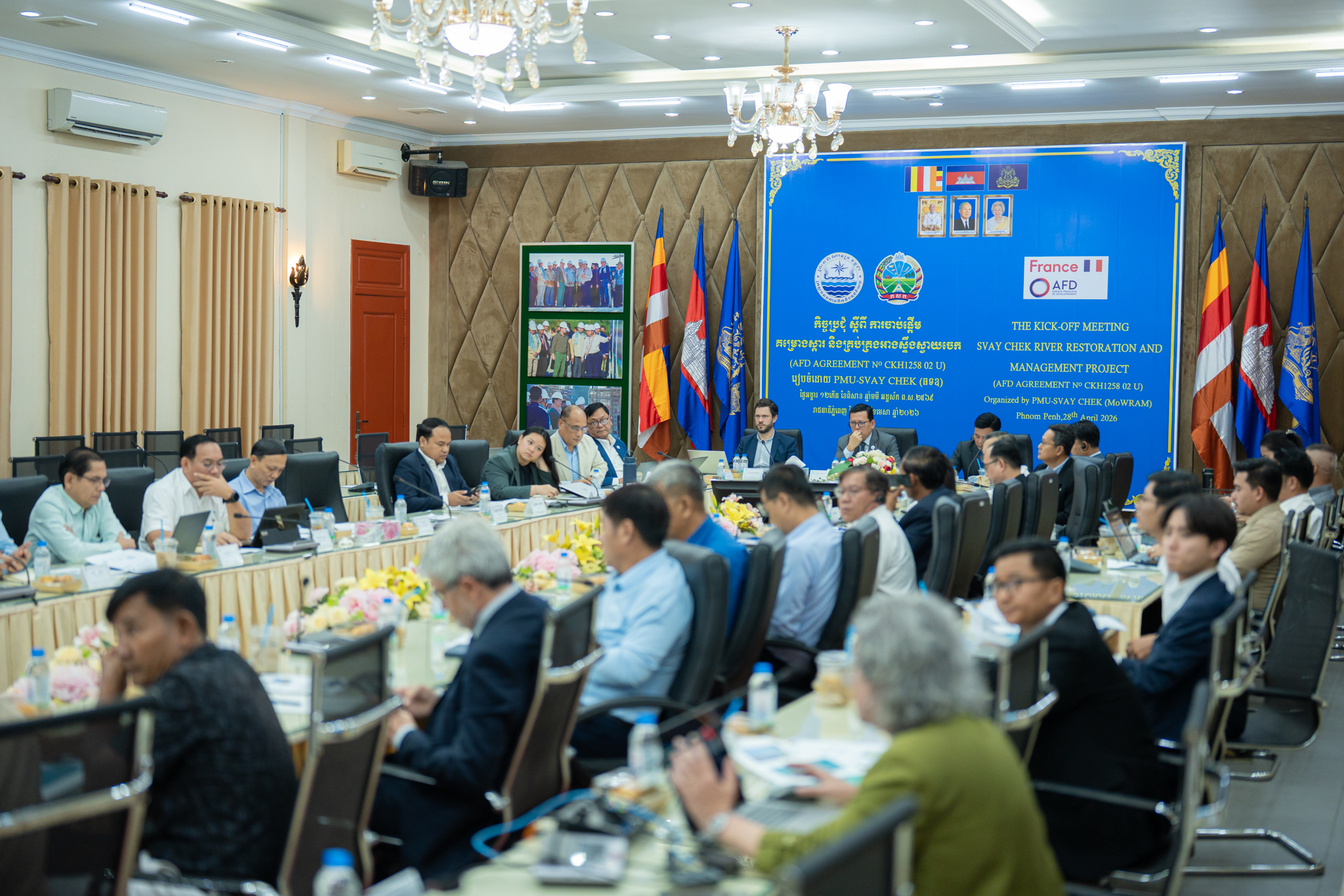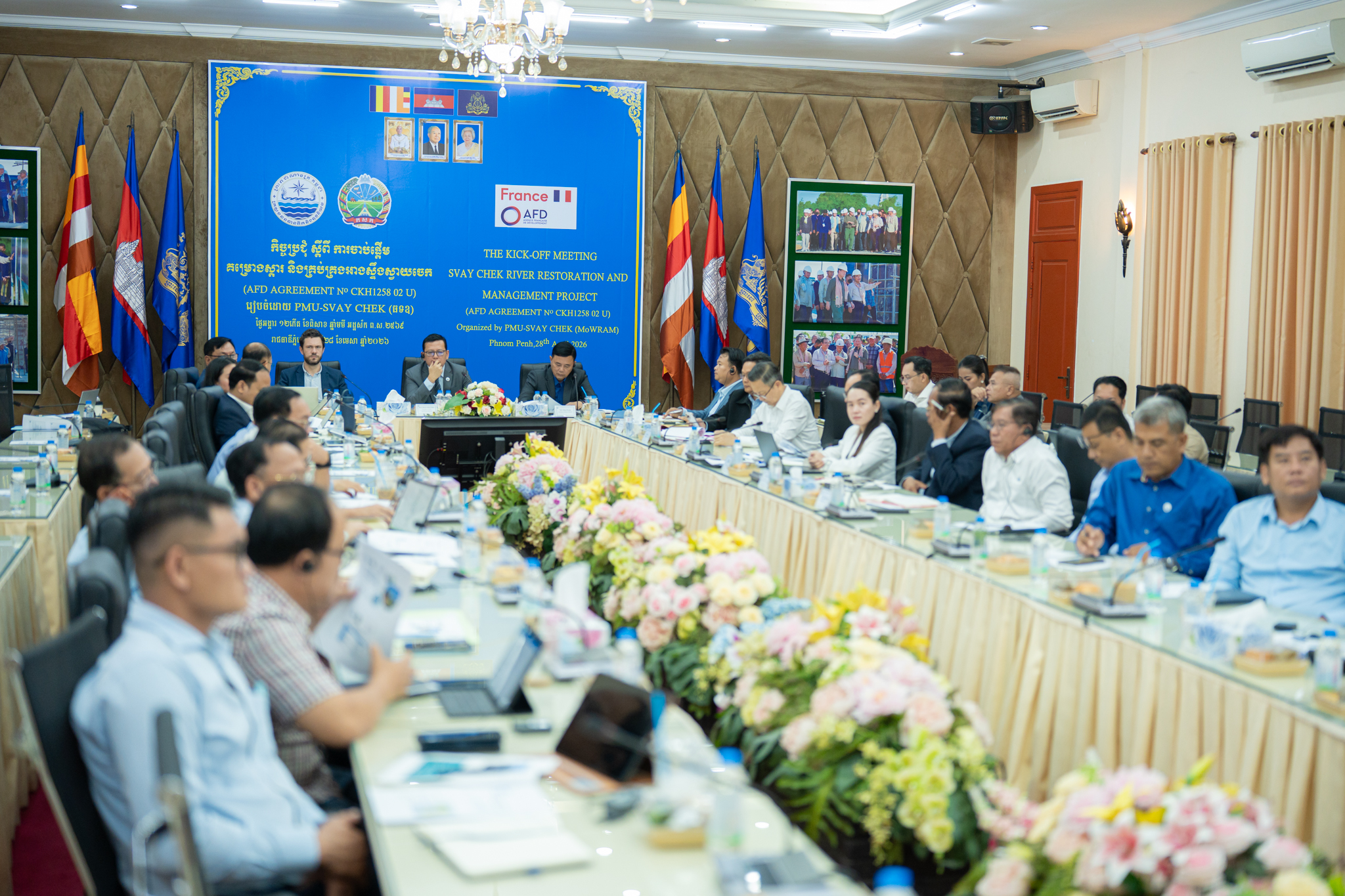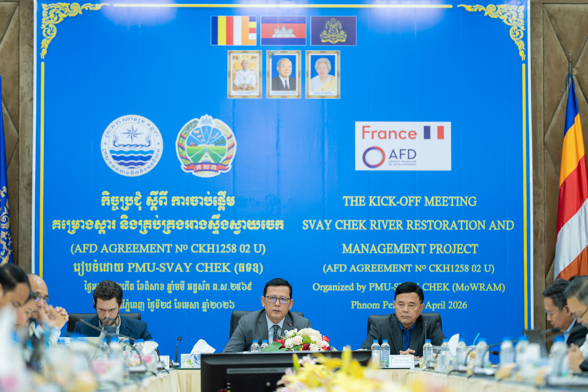 នៅព្រឹកថ្ងៃអង្គារ ១២កើត ខែពិសាខ ឆ្នាំមមី អដ្ឋស័ក ពុទ្ធសករាជ ២៥៦៩ ត្រូវនឹងថ្ងៃទី២៨ ខែមេសា ឆ្នាំ២០២៦ ឯកឧត្តម ចាន់ យុត្ថា រដ្ឋលេខាធិការ តំណាងដ៏ខ្ពង់ខ្ពស់ឯកឧត្តម ថោ ជេដ្ឋា រដ្ឋមន្ត្រីក្រសួងធនធានទឹក និងឧតុនិយម បានអញ្ជើញដឹកនាំកិច្ចប្រជុំបើកដំណើរការគម្រោងស្តារ និងគ្រប់គ្រងអាងស្ទឹងស្វាយចេក ក្នុងភូមិសាស្ដ្រខេត្តបន្ទាយមានជ័យ។ គម្រោងនេះមានរយៈពេលអនុវត្ត ៦ឆ្នាំ ដោយទទួលបានហិរញ្ញប្បទានពីទីភ្នាក់ងារបារាំងសម្រាប់ការអភិវឌ្ឍ (AFD)។