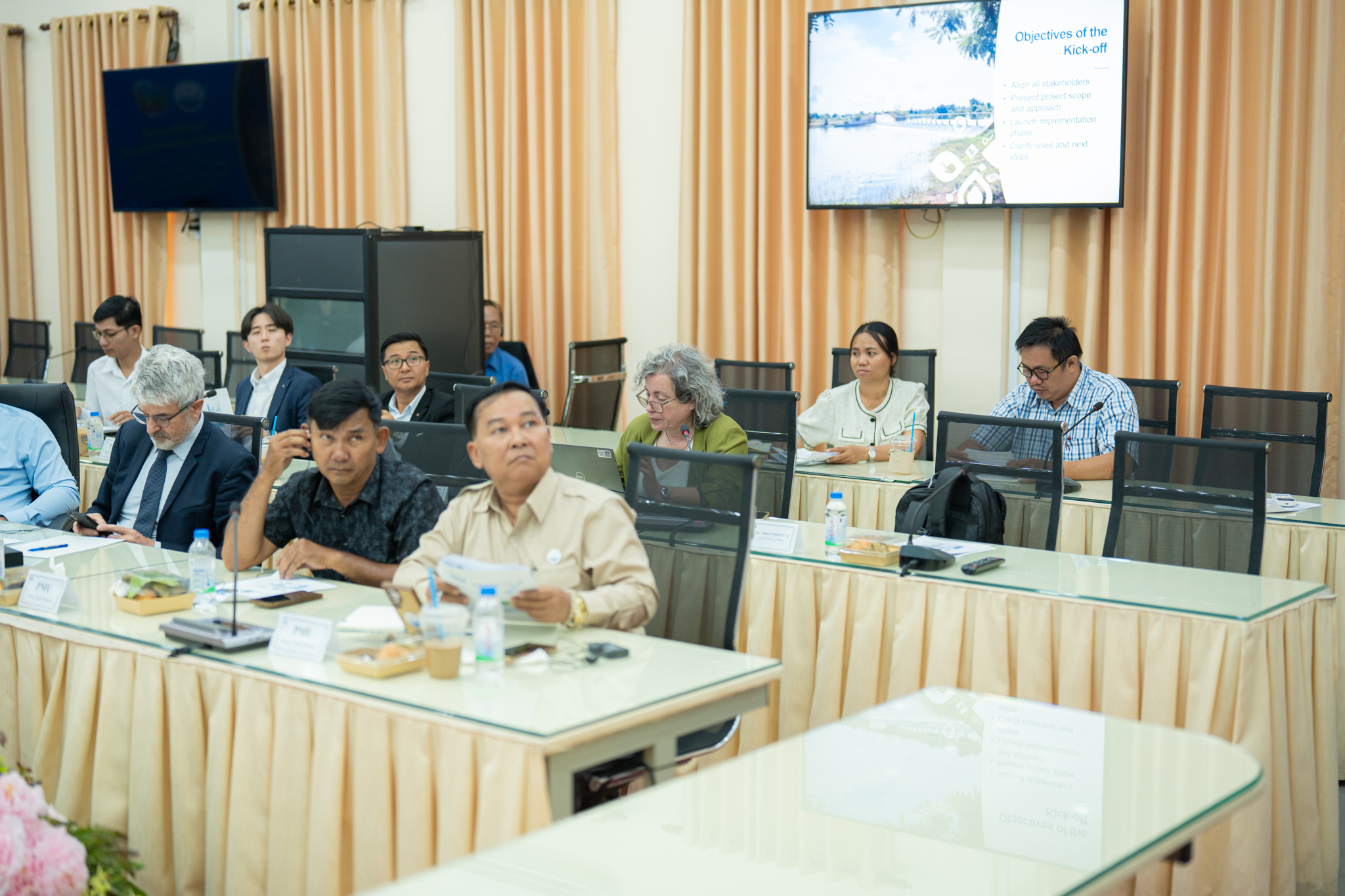 កិច្ចប្រជុំនេះមានការអញ្ជើញចូលរួមពីលោក Laurent Raspaud តំណាងលោកស្រី Sandrine BOUCHER នាយកទីភ្នាក់ងារ AFD ប្រចាំកម្ពុជា ឯកឧត្តម មាស ពិសិដ្ឋ រដ្ឋលេខាធិការក្រសួងកសិកម្ម រុក្ខាប្រមាញ់ និងនេសាទ ព្រមទាំងតំណាងក្រសួងសេដ្ឋកិច្ច និងហិរញ្ញវត្ថុ រដ្ឋបាលខេត្តបន្ទាយមានជ័យ គណៈកម្មាធិការជាតិទន្លេមេគង្គកម្ពុជា មន្ទីរធនធានទឹក និងឧតុនិយមខេត្ត ទីប្រឹក្សាបច្ចេកទេសជាតិ-អន្តរជាតិ និងអង្គភាពគ្រប់គ្រងគម្រោងជាច្រើនរូបទៀត។