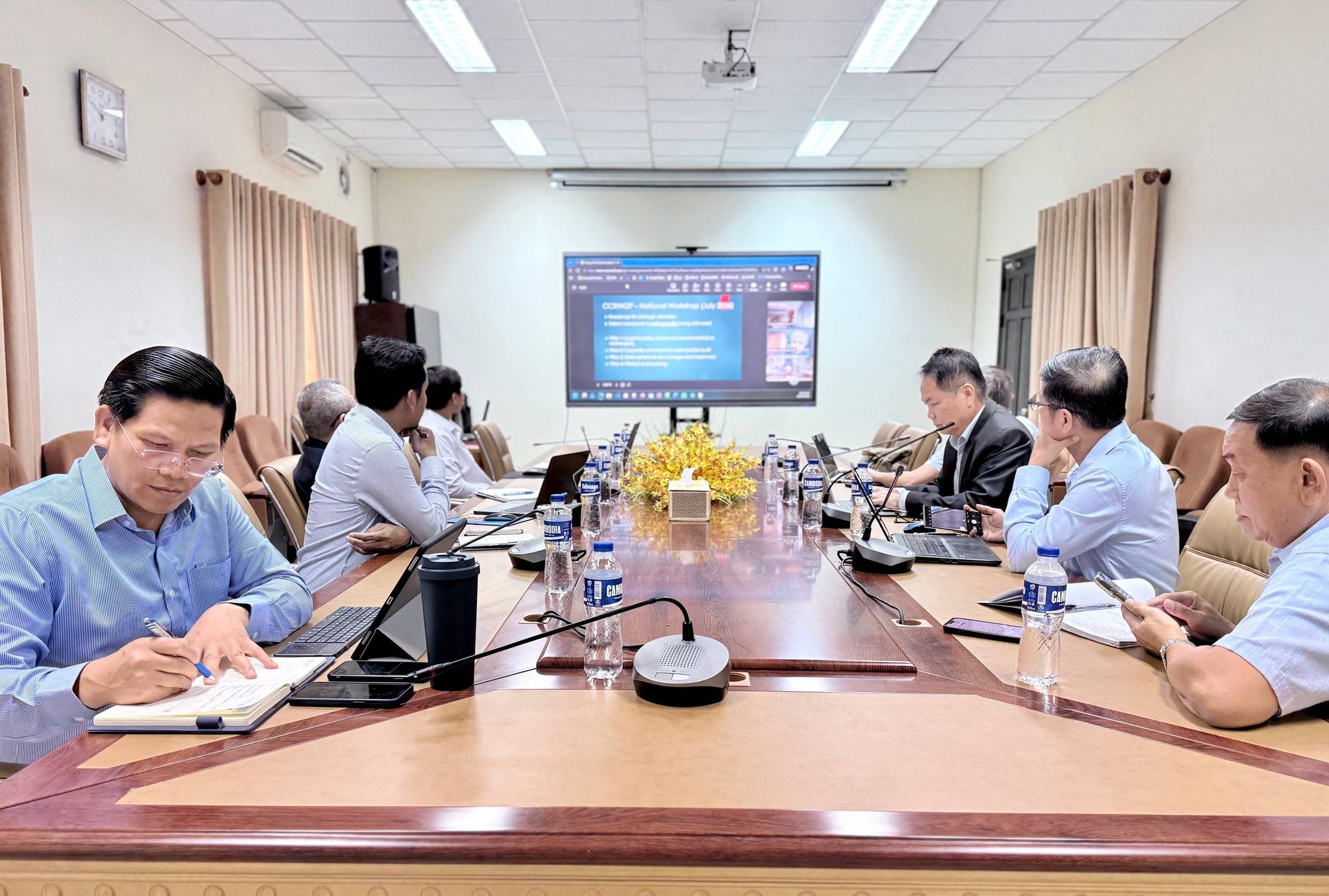 សូមជម្រាបថា គោលបំណងនៃកិច្ចប្រជុំនេះ គឺដើម្បីសម្របសម្រួល និងជំរុញល្បឿននៃការអនុវត្តជំនួយបច្ចេកទេស នៃគម្រោងផែនការមេអាងទន្លេដែលមានភាពធន់នឹងអាកាសធាតុនៅកម្ពុជា (Climate Resilient River Basins Masterplan - CRRBMP) ដោយមានការអញ្ជើញចូលរួមពីមន្ត្រីជំនាញរបស់ ADB រួមទាំងក្រុមទីប្រឹក្សាបច្ចេកទេសជាតិ និងអន្តរជាតិជាច្រើនរូបទៀត។